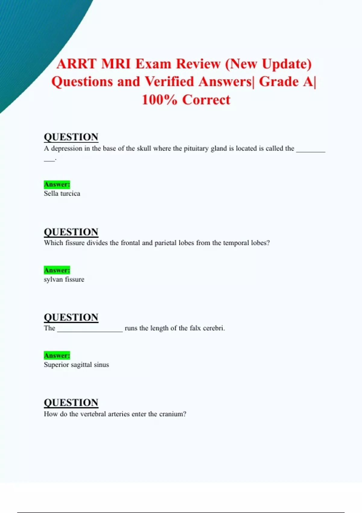 ARRT MRI Exam Review (New 2025/ 2026 Update) Questions and Verified Answers| Grade A | 100% Correct