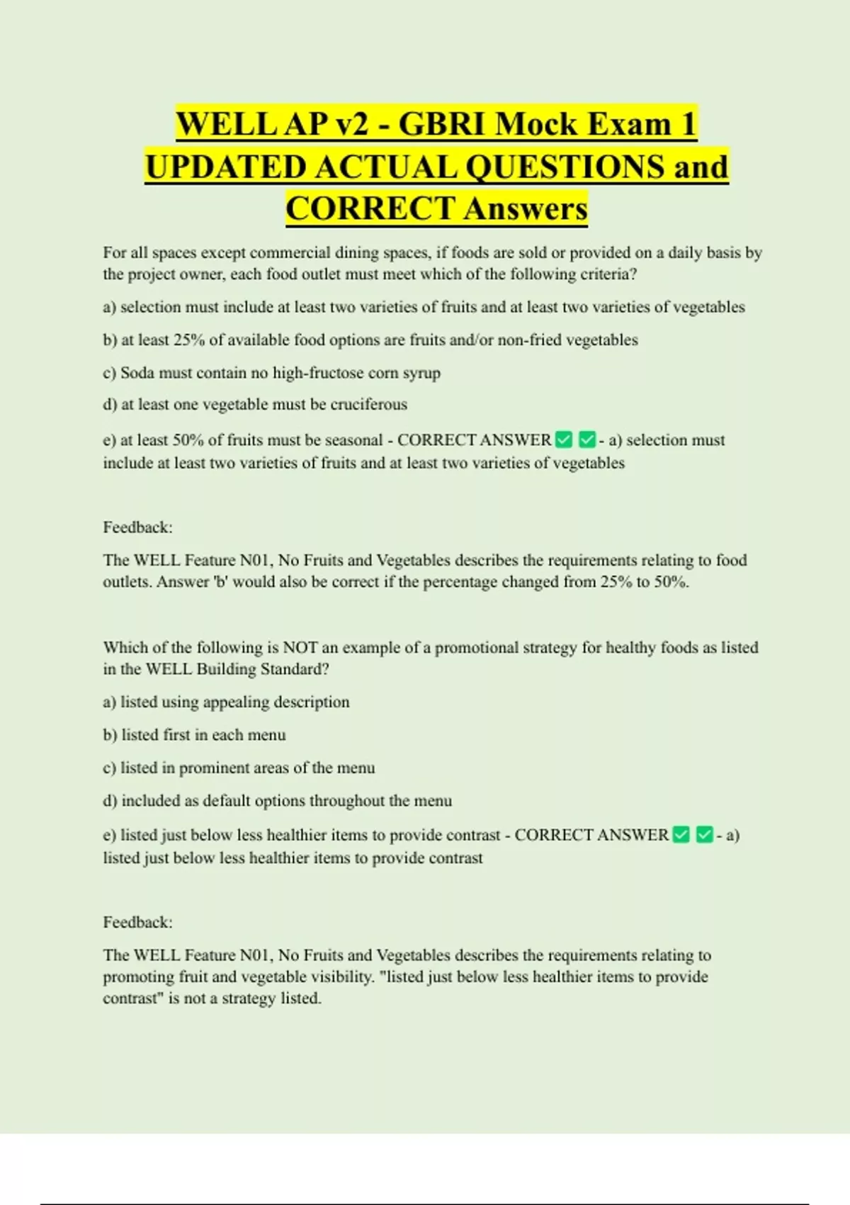 e) at least 50% of fruits must be seasonal - CORRECT ANSWER - a) selection must