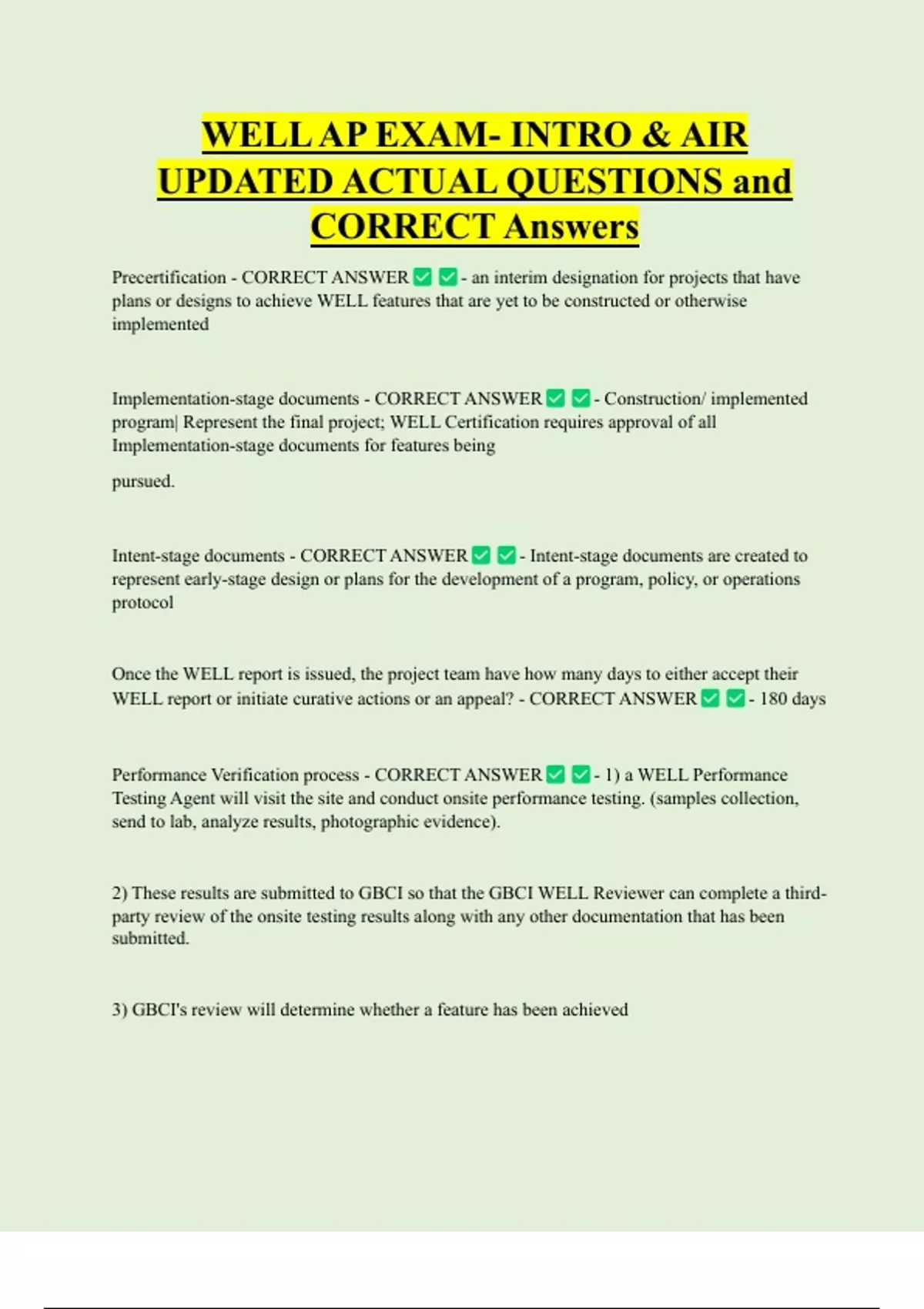 1. For WELL v1 projects and v2 projects in which GBCI is the WELL Performance Testing|