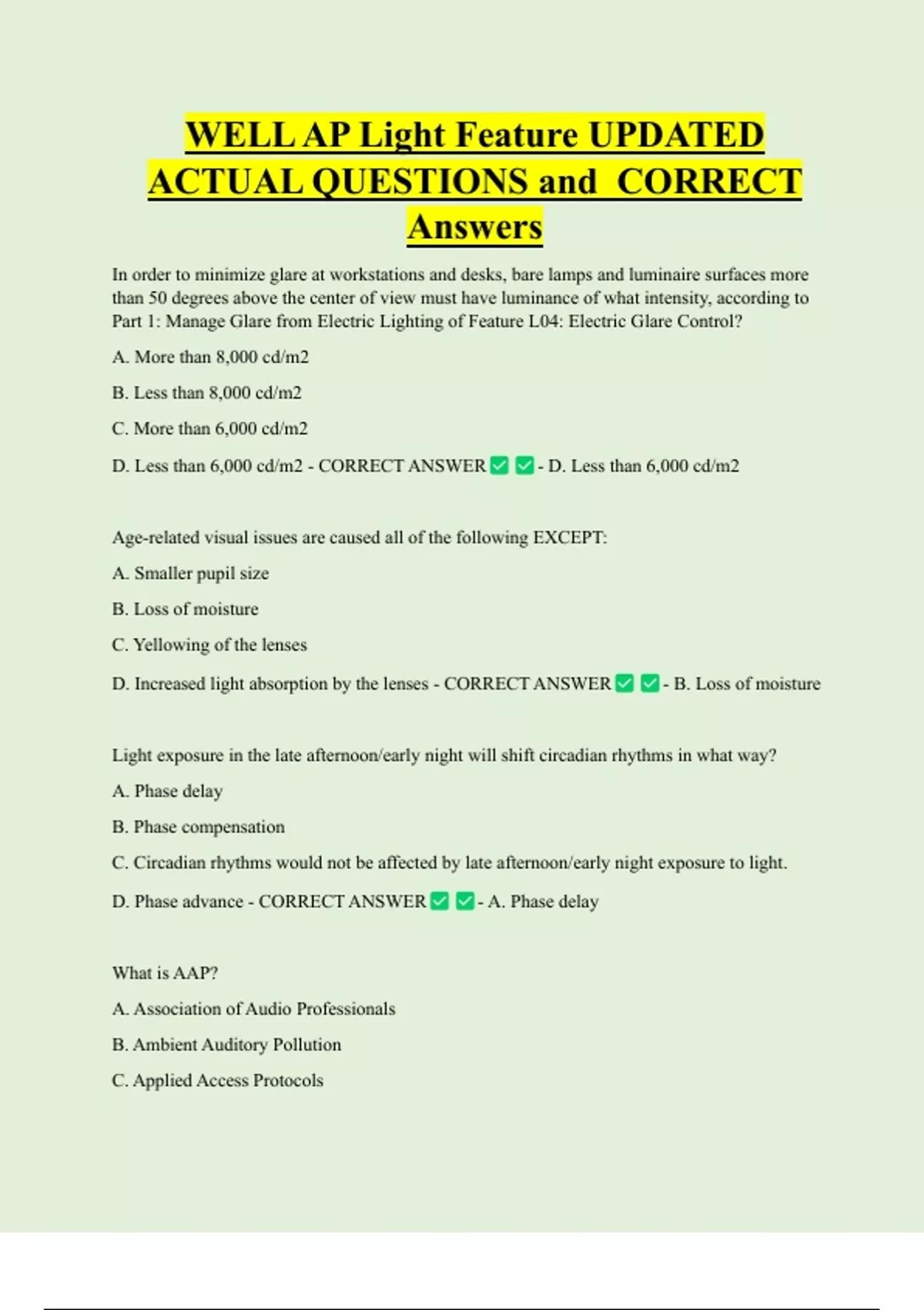 ACTUAL QUESTIONS and CORRECT