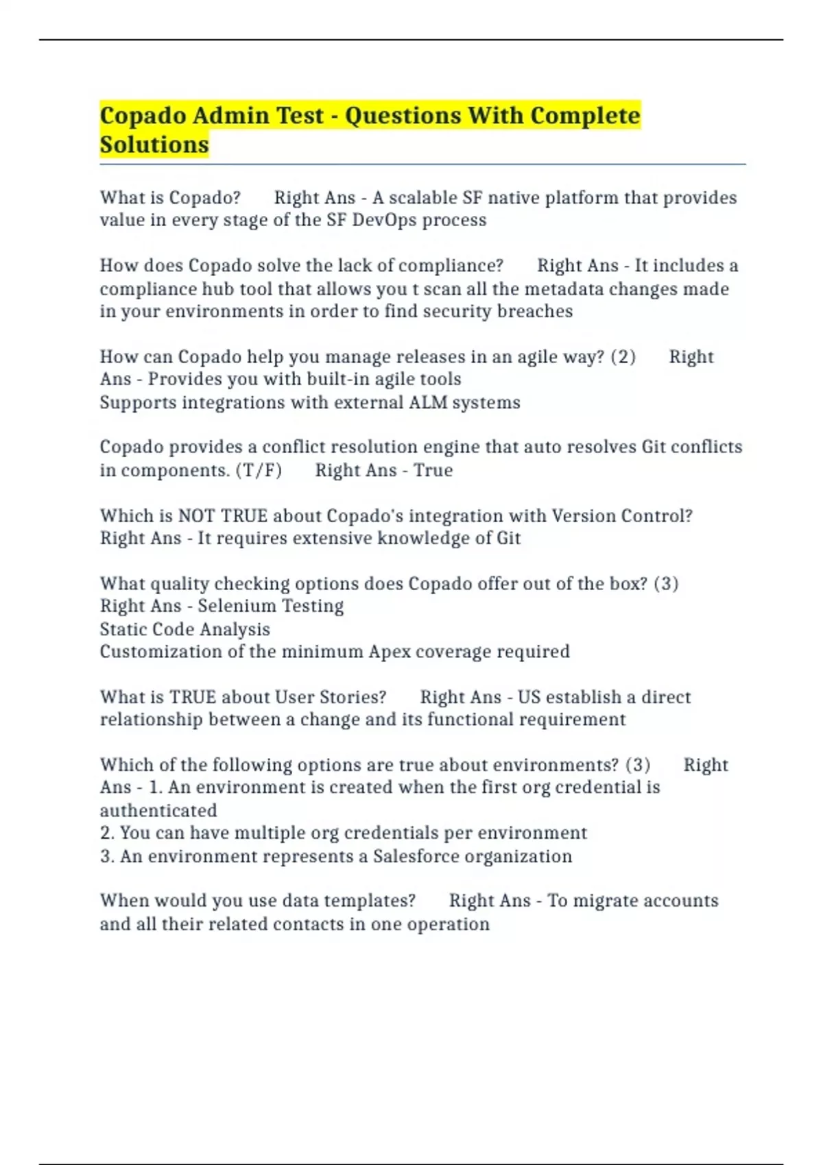 What is Copado? Right Ans - A scalable SF native platform that provides