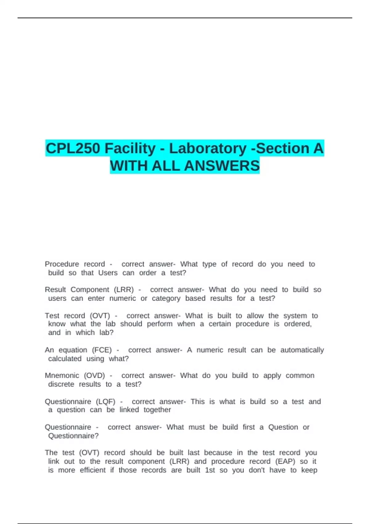CPL250 Facility - Laboratory -Section A WITH ALL ANSWERS
