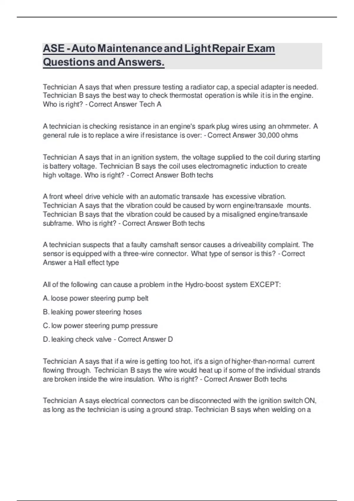 D. check for fluid leaks - Correct Answer C