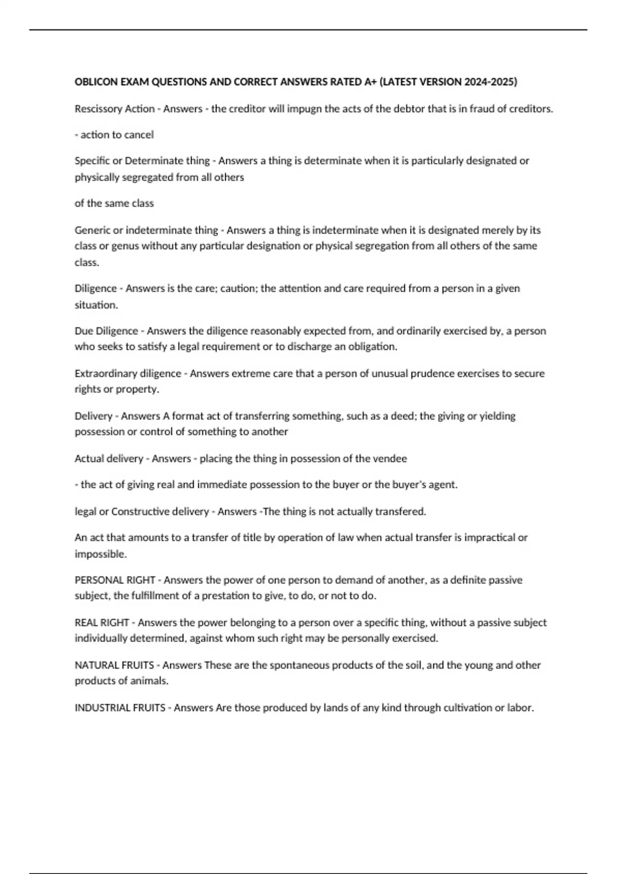 Specific Performance - Answers - the right of the creditor or obligee to compel the debtor to make