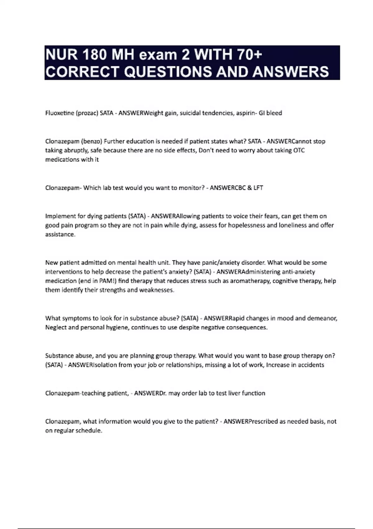 NUR 180 MH exam 2 WITH 70+ correct questions and answers