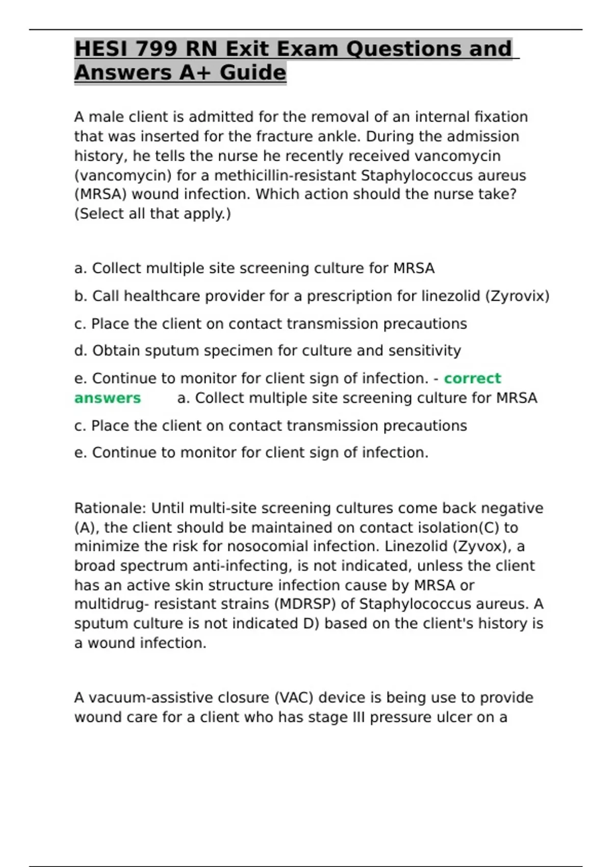 HESI 799 RN Exit Exam Questions and