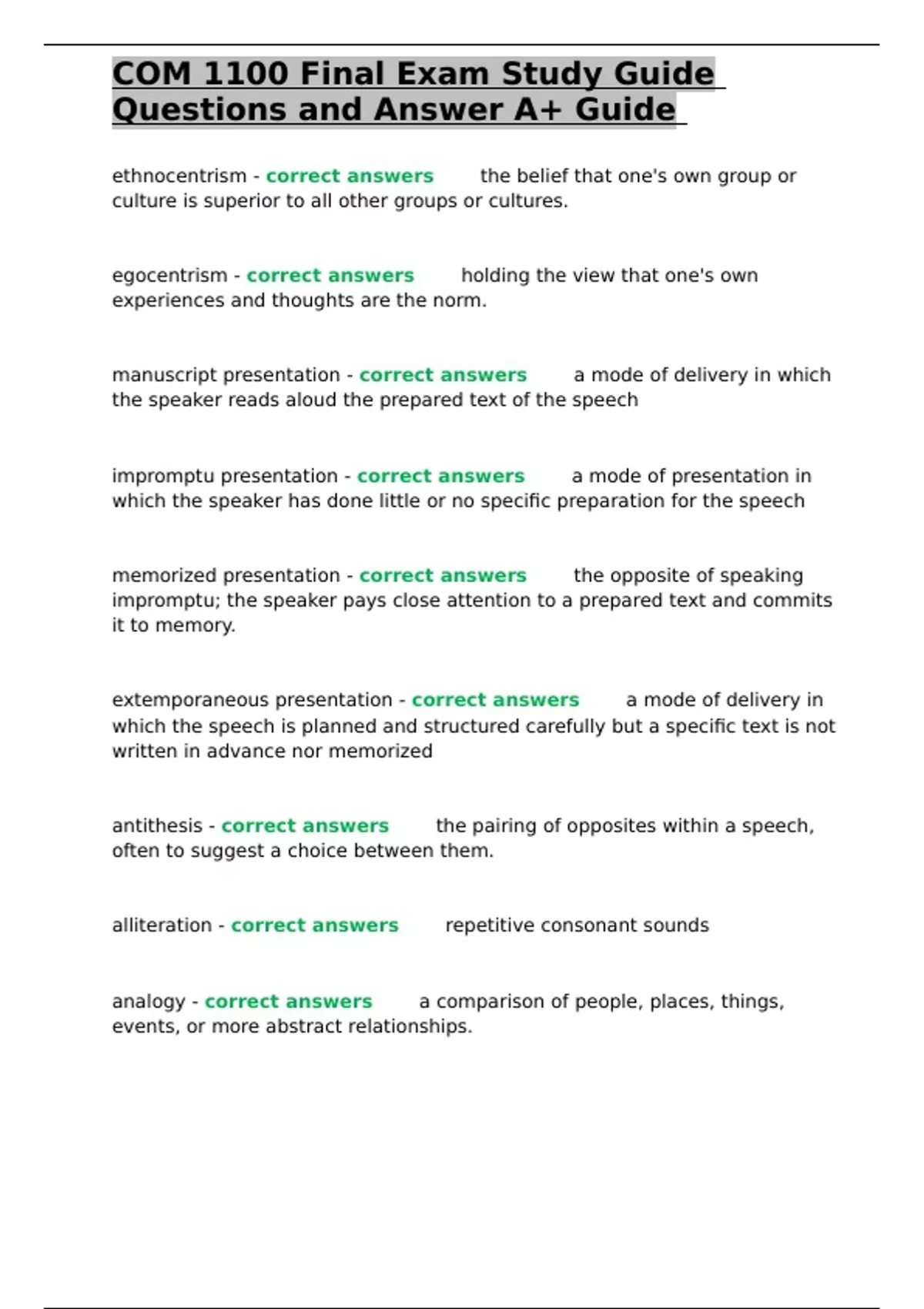 COM 1100 Final Exam Study Guide Questions and Answer A+ Guide