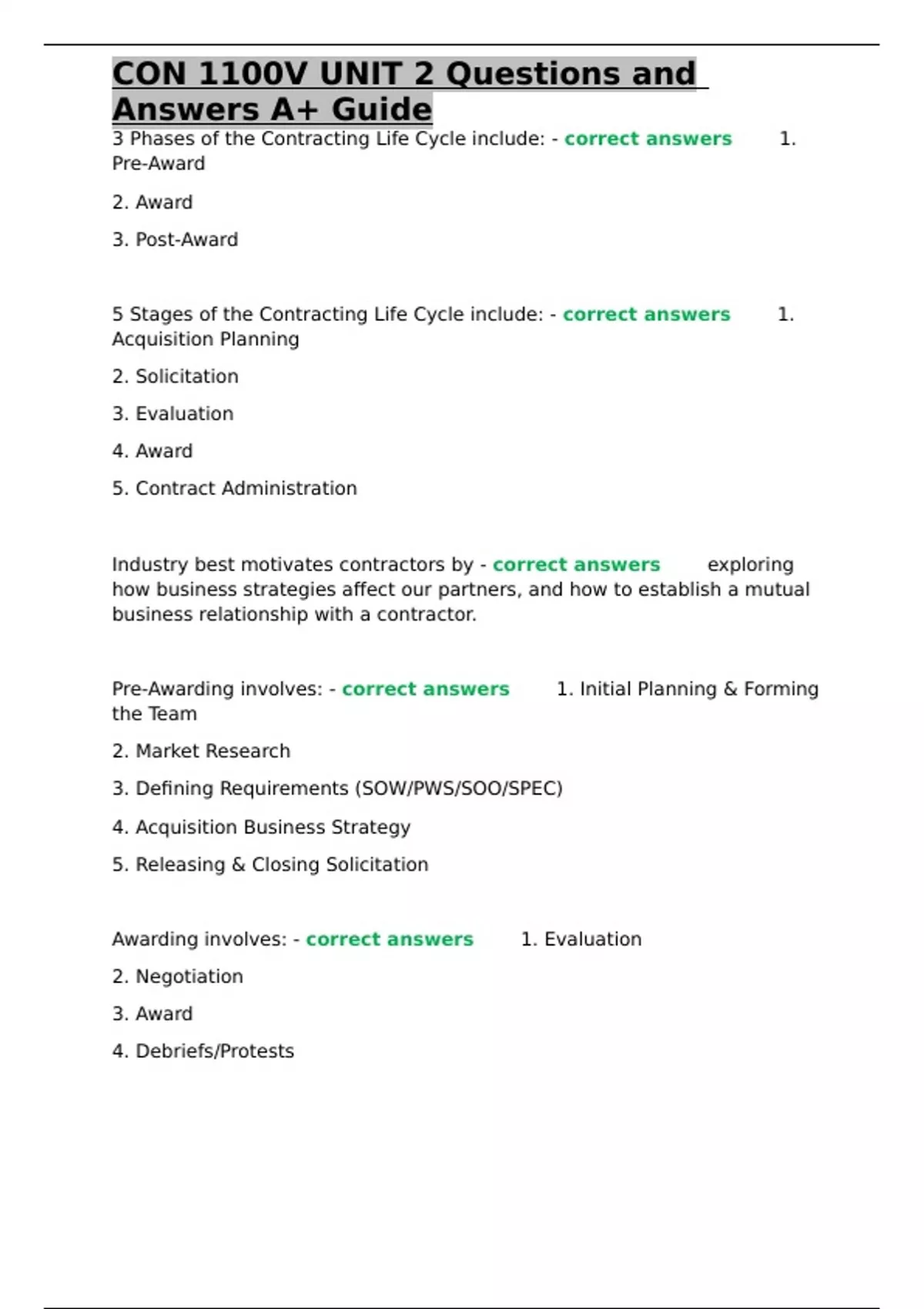 5 Stages of the Contracting Life Cycle include: - correct answers✅✅1.