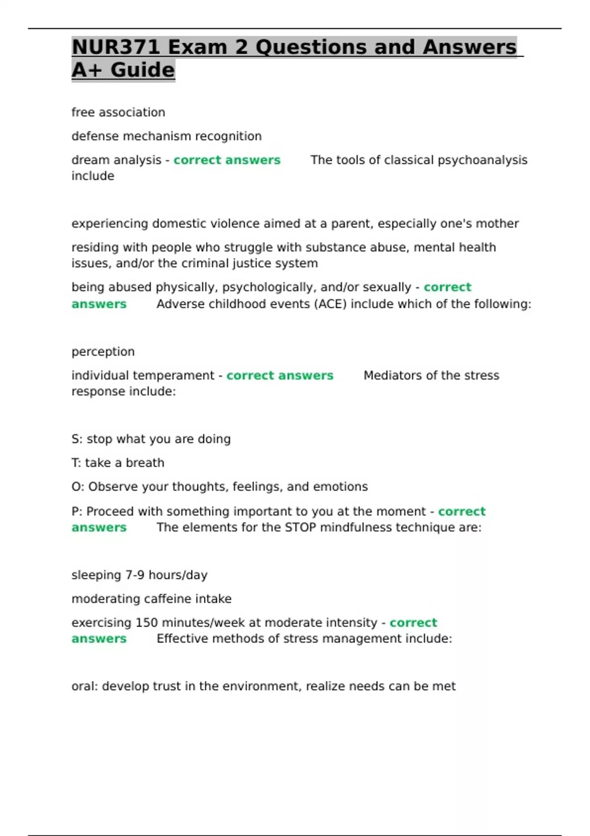 , NUR371 Exam 2 Questions and Answers