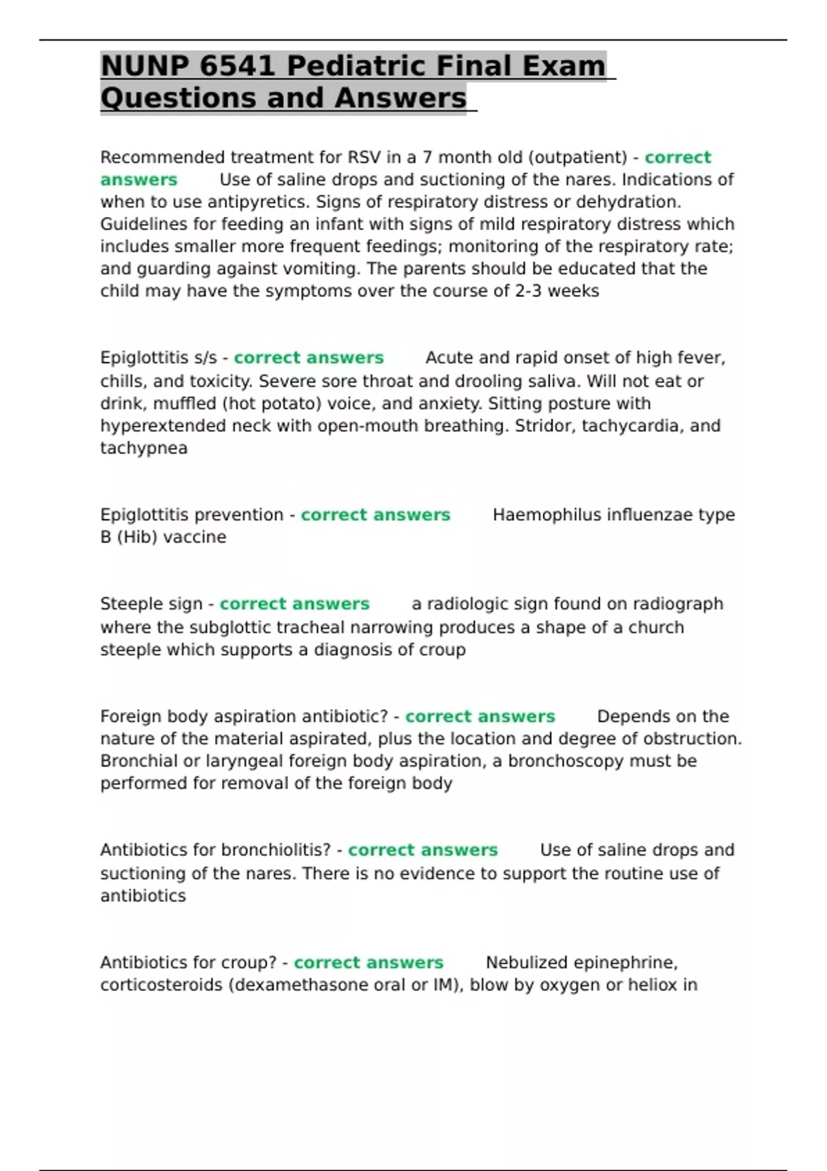 ,NUNP 6541 Pediatric Final Exam