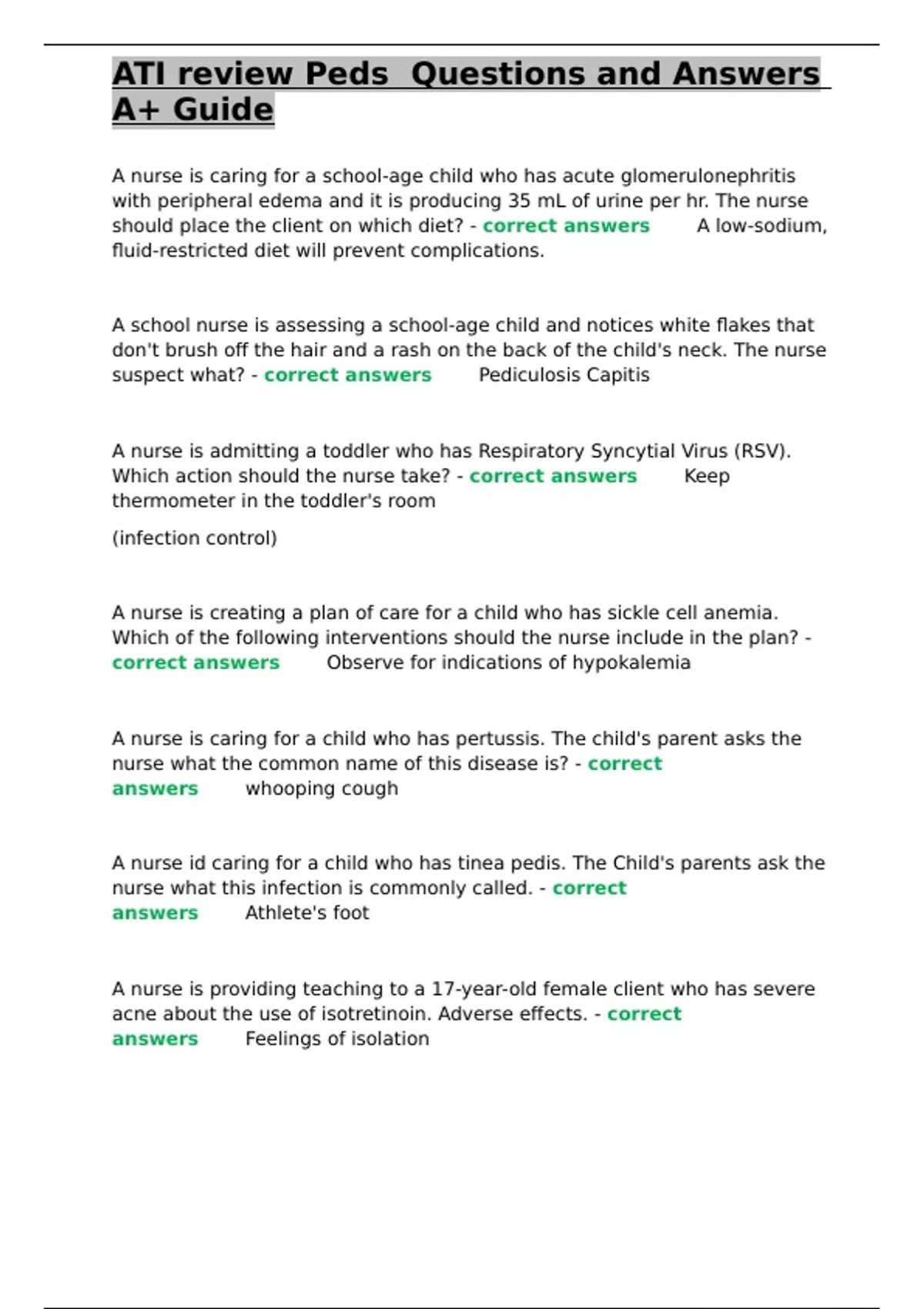 ATI review Peds Questions and Answers A+ Guide