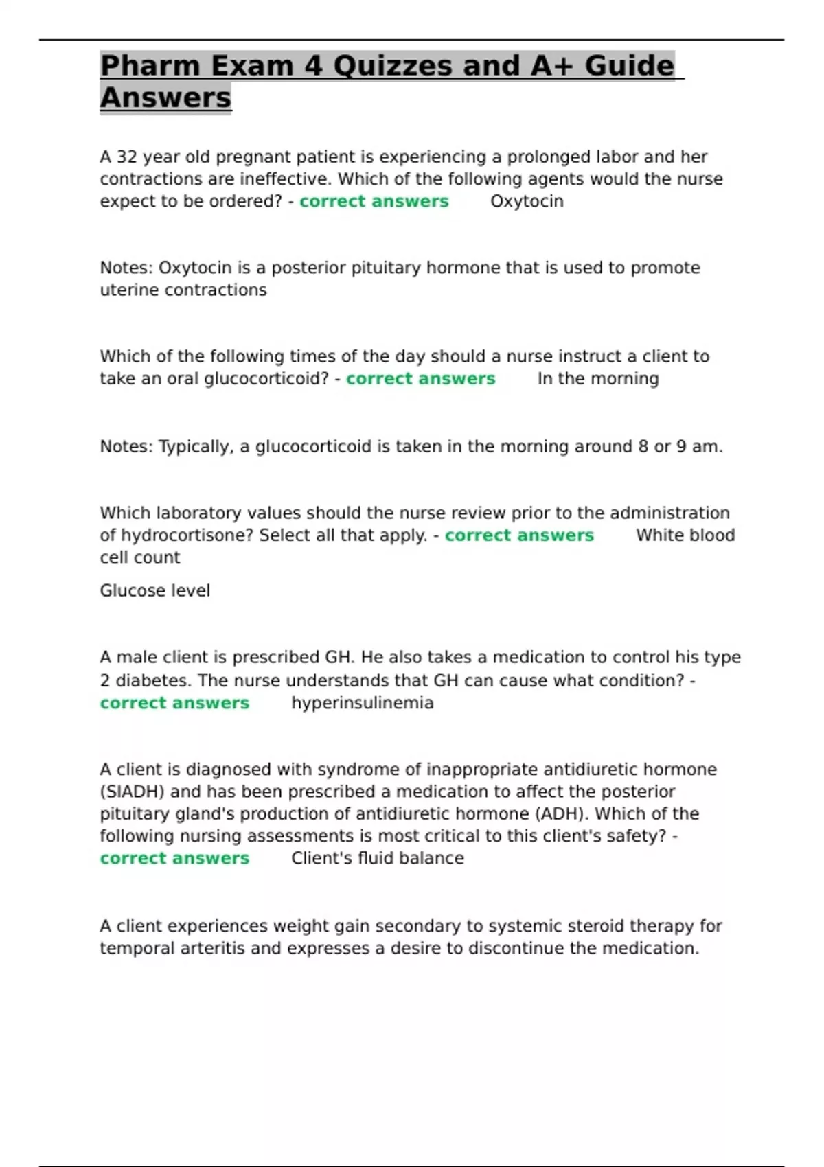 Pharm Exam 4 Quizzes and A+ Guide Answers