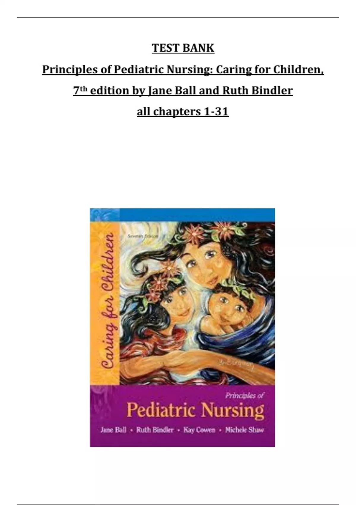 ,PrinciplesBofBPediatricBNursing:BCaringBforBChildren,B7eBJaneBW.BBallB(etBal.)BTestBBank