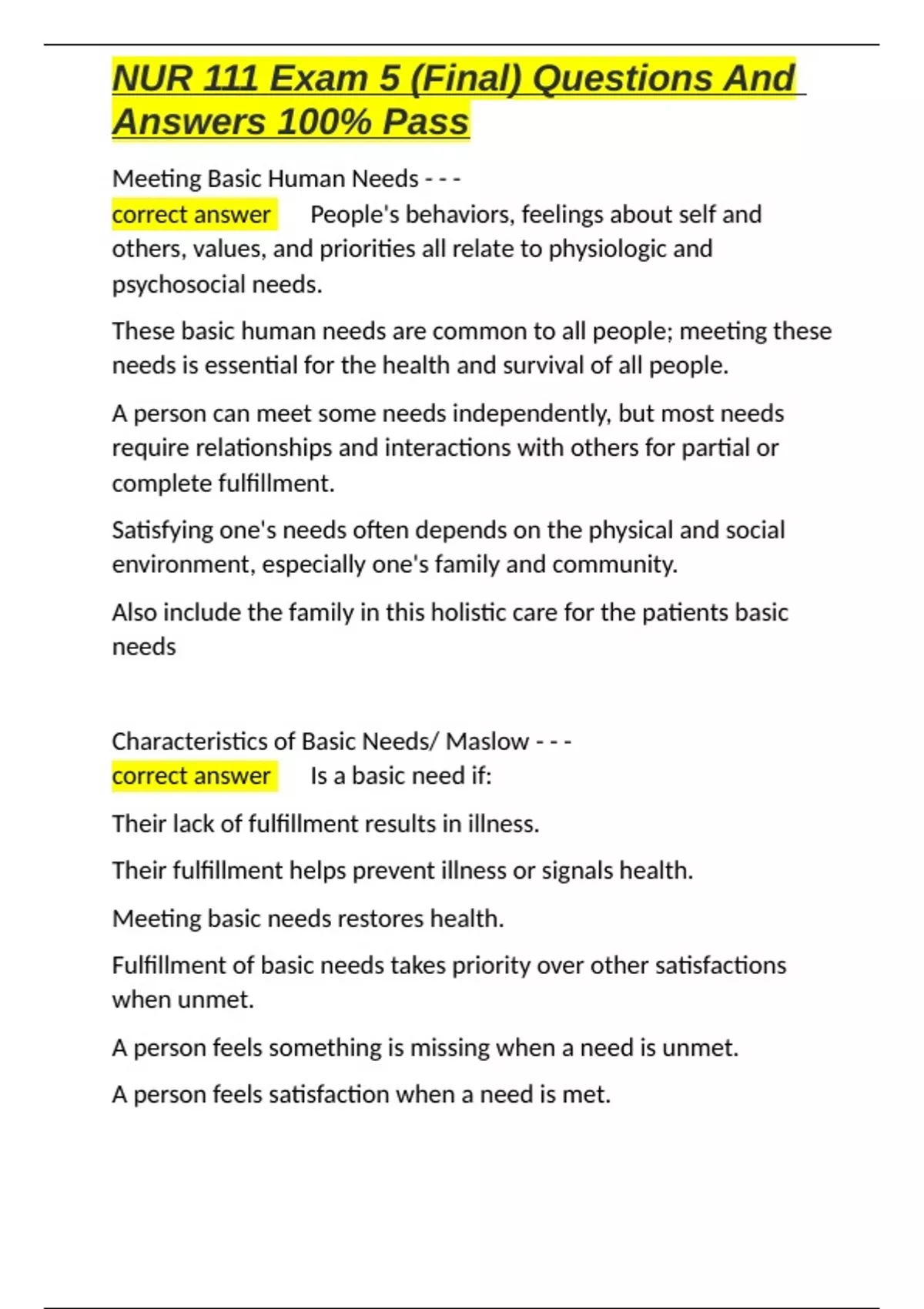 NUR 111 Exam 5 (Final) Questions And Answers 100- Pass.
