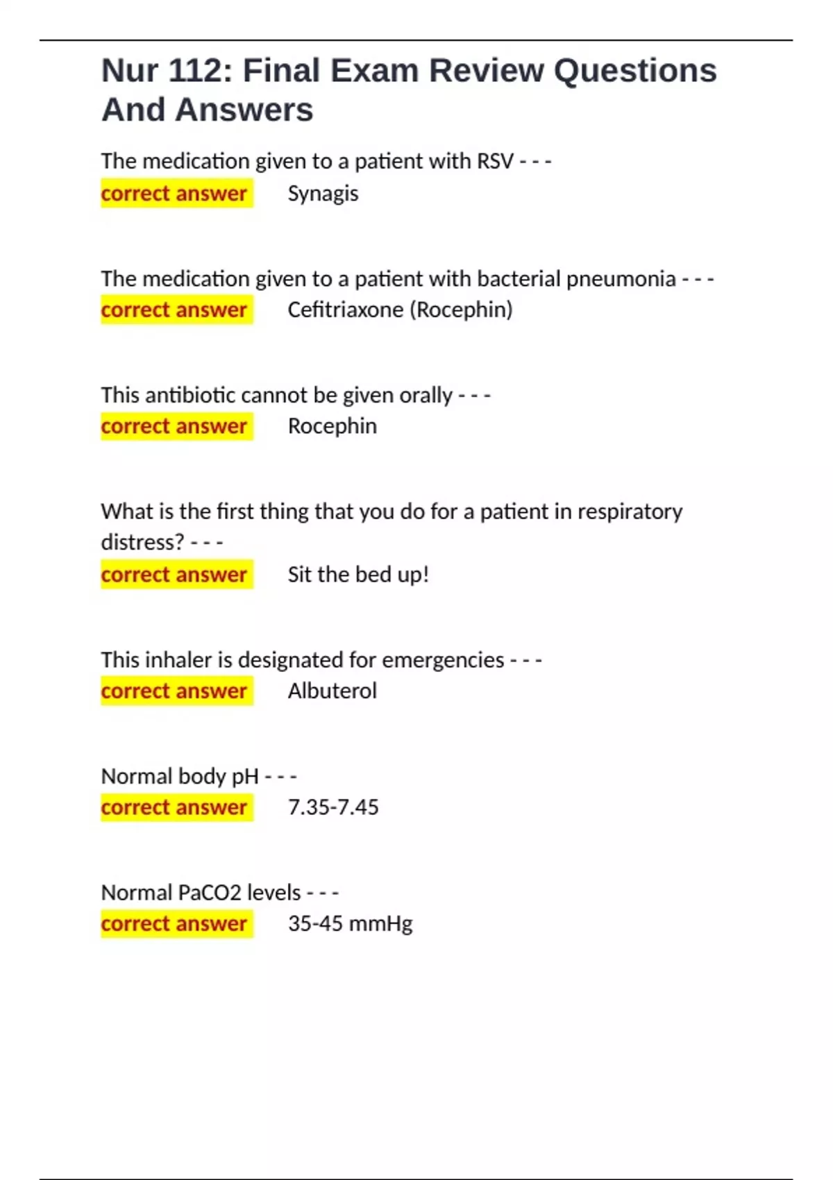 Nur 112 Final Exam Review Questions And Answers.
