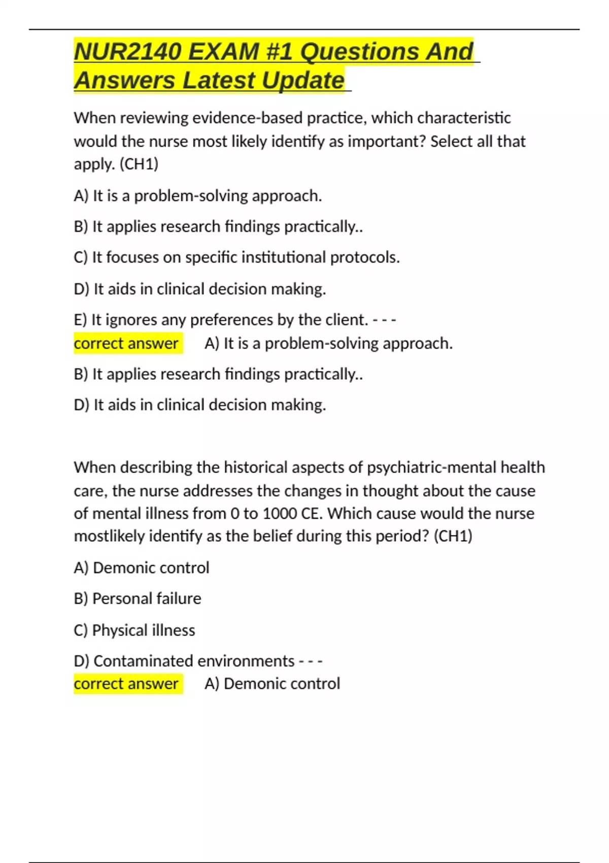 ,NUR2140 EXAM #1 Questions And