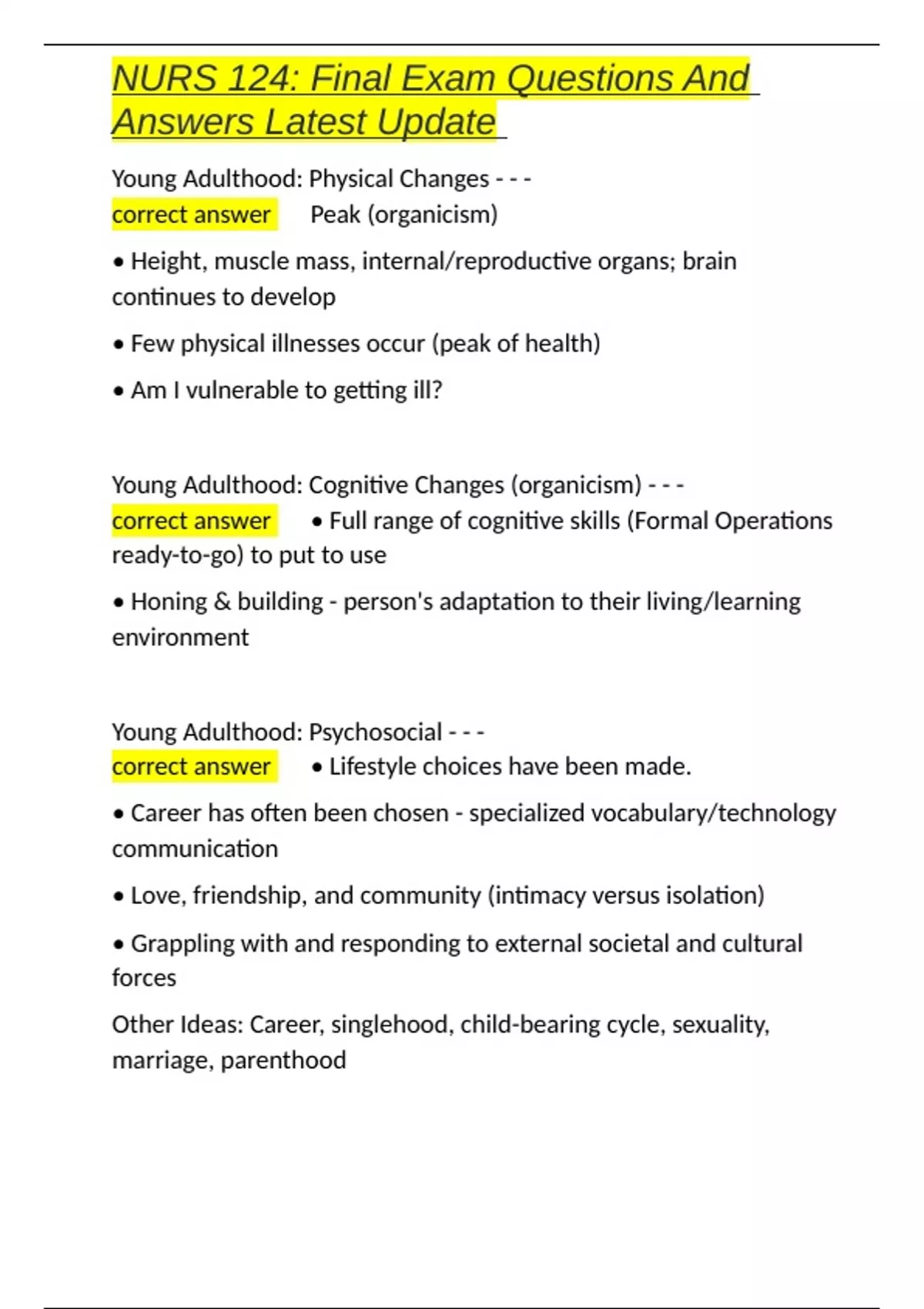 , NURS 124: Final Exam Questions And