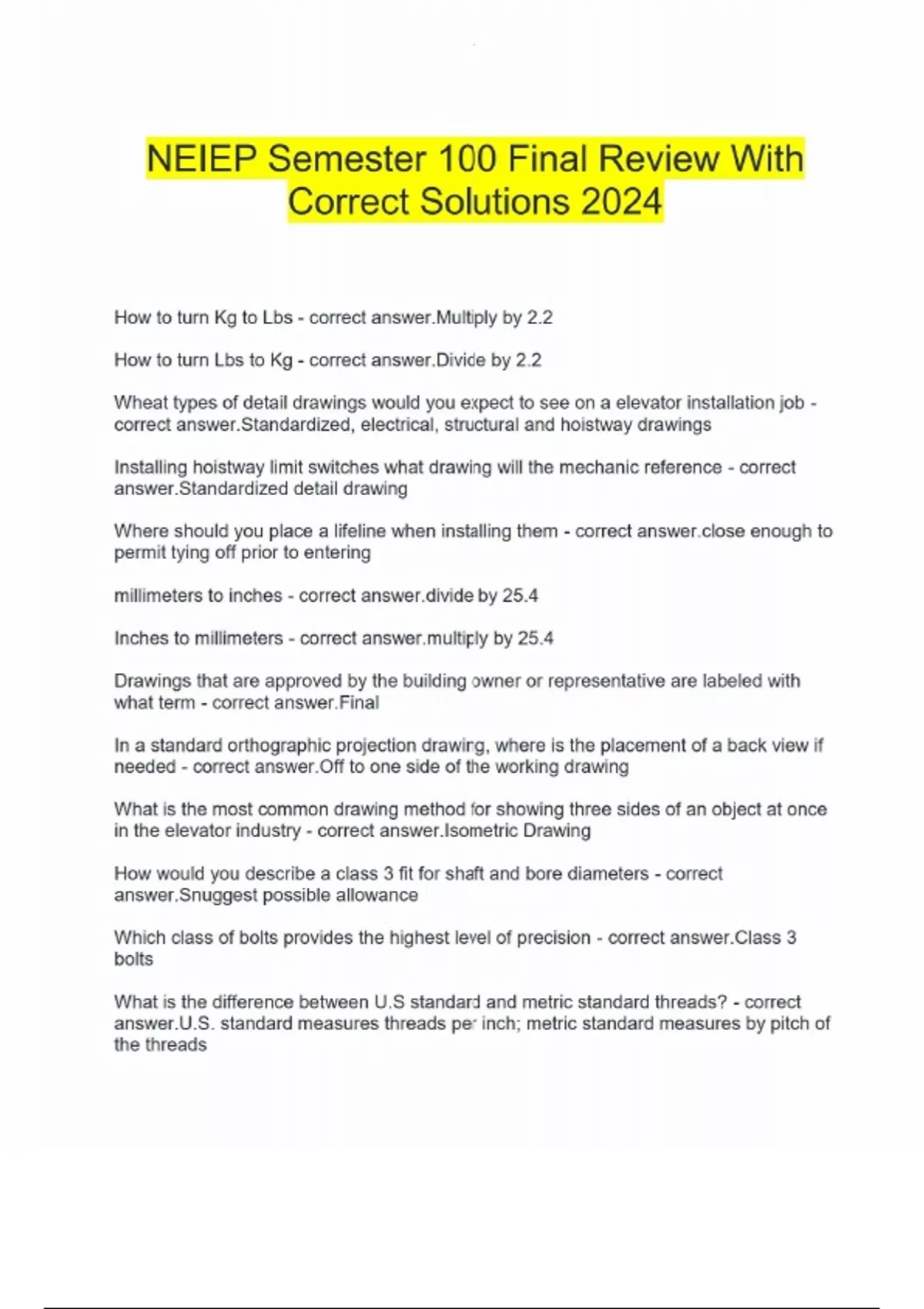 NEIEP Semester 100 Final Review With Correct Solutions 2024