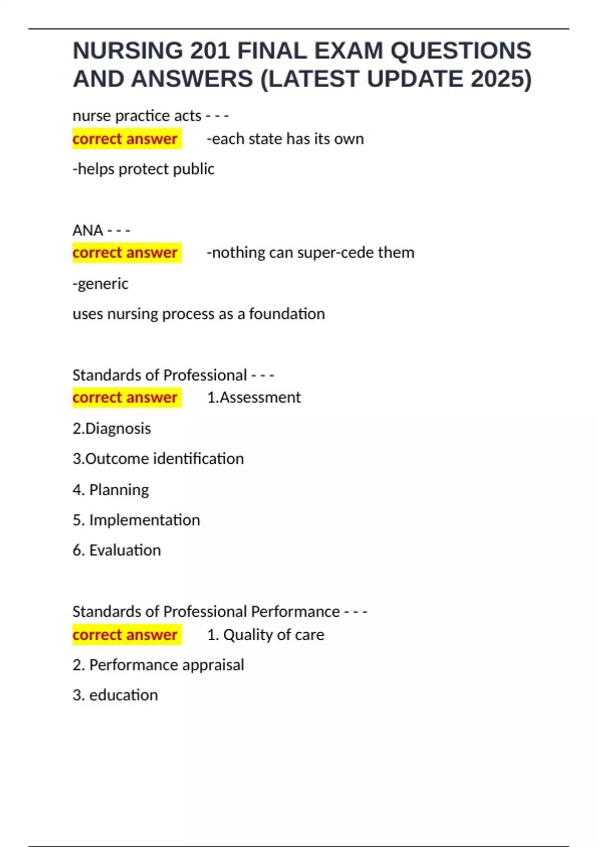 , NURSING 201 FINAL EXAM QUESTIONS