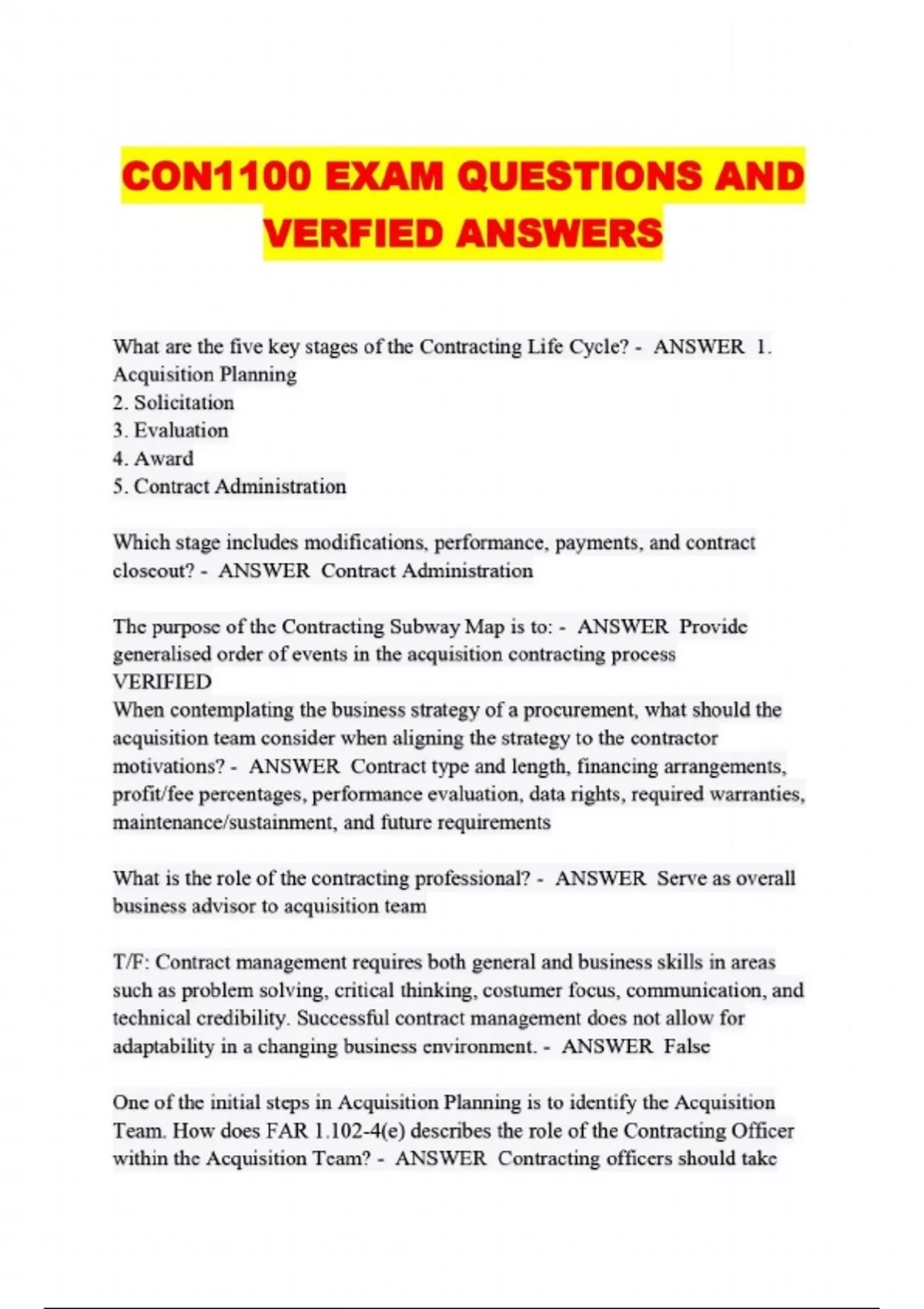 CON1100 EXAM QUESTIONS AND VERIFIED ANSWERS...