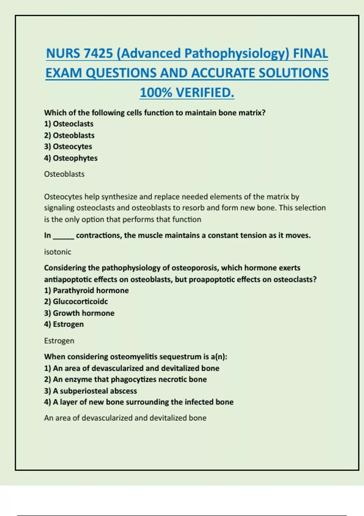 NURS 7425 (Advanced Pathophysiology) FINAL EXAM QUESTIONS AND ACCURATE SOLUTIONS 100% VERIFIED