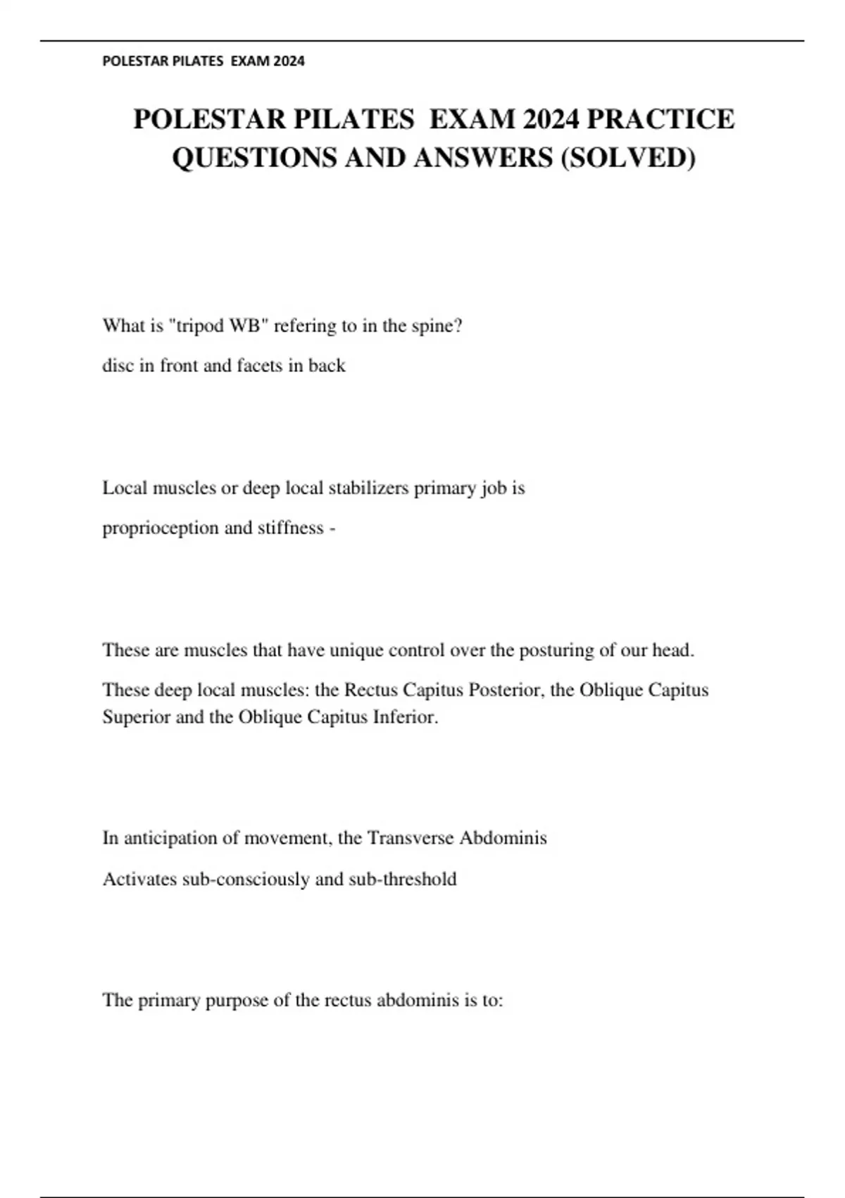 POLESTAR PILATES EXAM 2024 PRACTICE