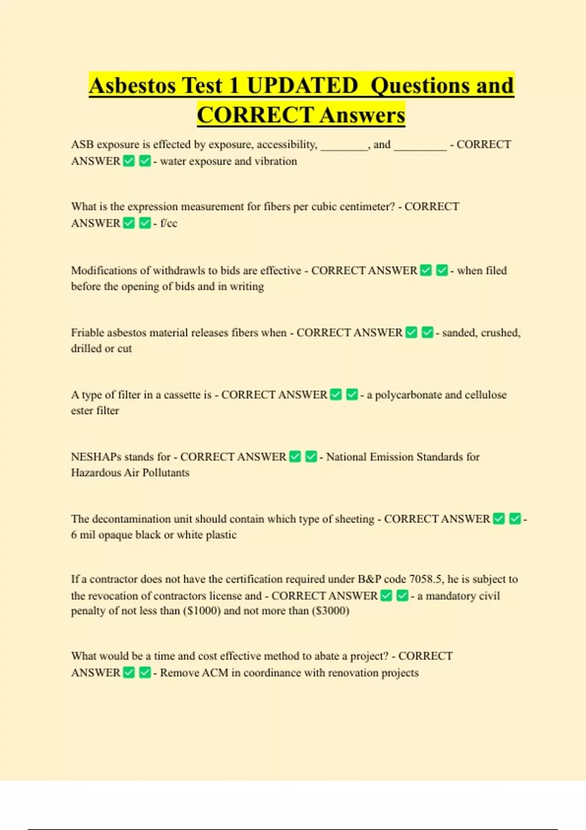 NESHAPs stands for - CORRECT ANSWER - National Emission Standards for