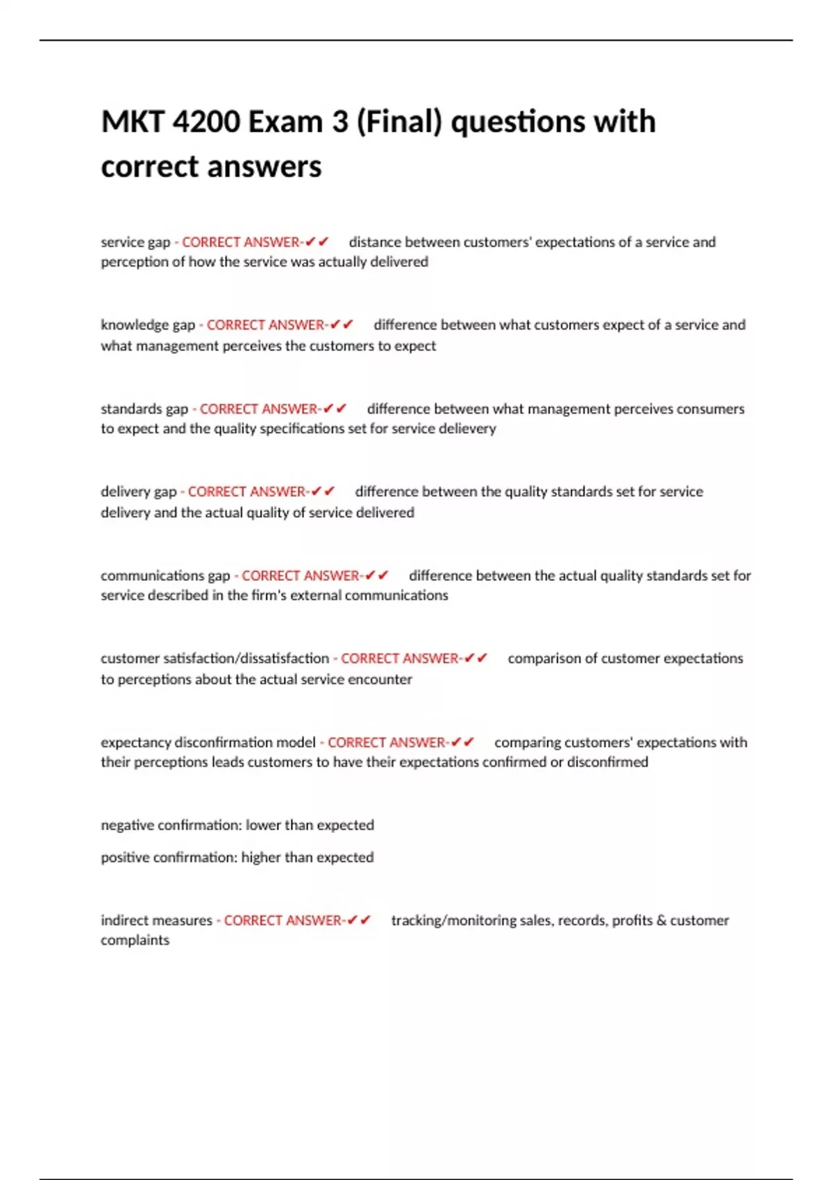 service gap - CORRECT ANSWER-✔✔✅distance between customers' expectations of a service and