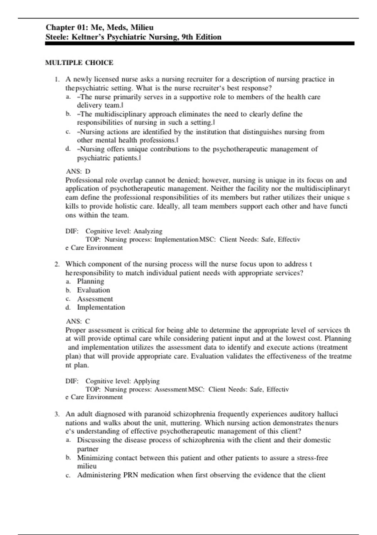 Test bank for keltner s psychiatric nursing 9th edition by debbie steeleer