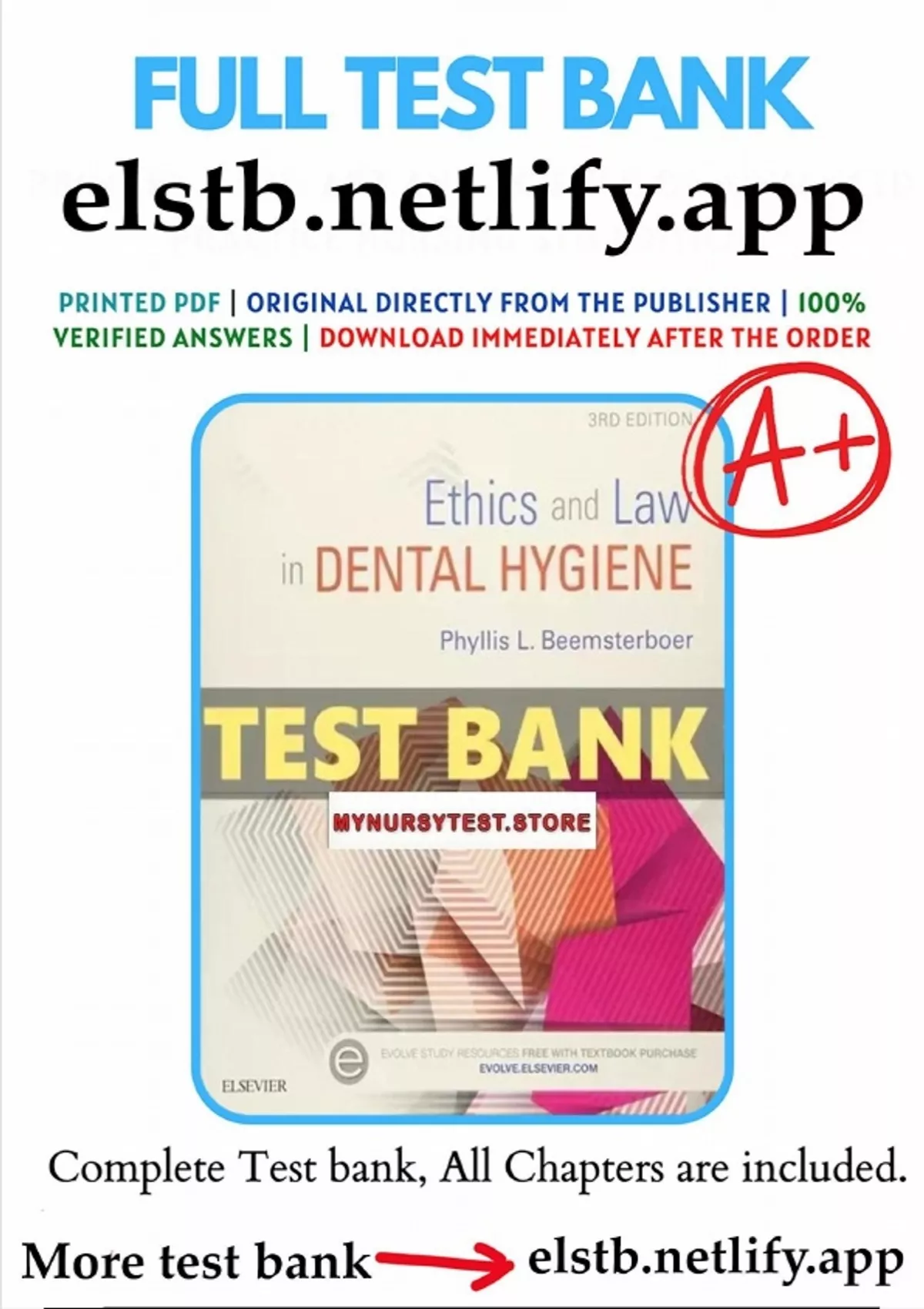 , DOWNLOAD THE Test Bank for Ethics and Law in Dental Hygiene 3rd EditionBeemste