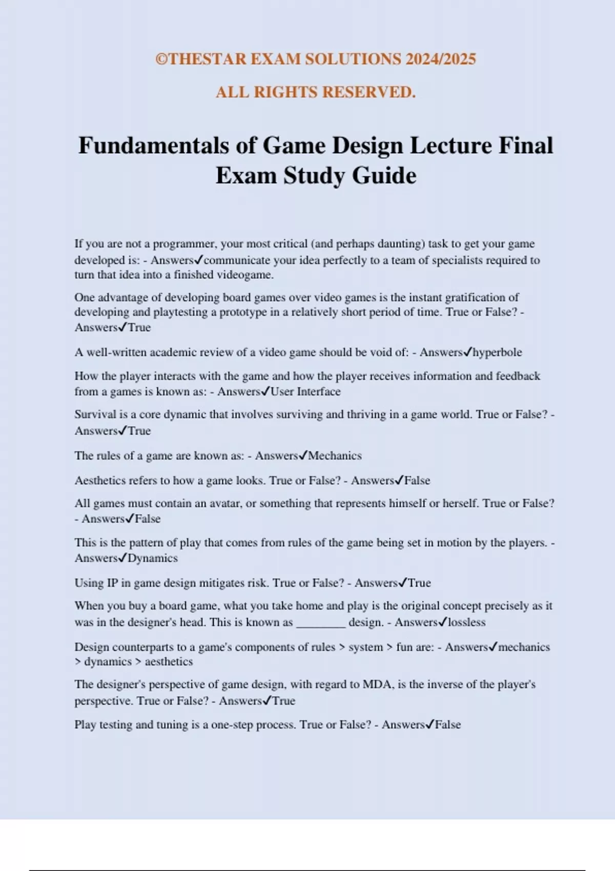 Aesthetics refers to how a game looks. True or False? - Answers✔False
