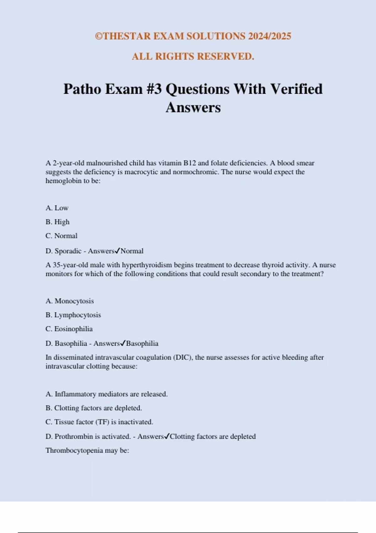 D. Hemolytic anemia - Answers✔Pernicious anemia