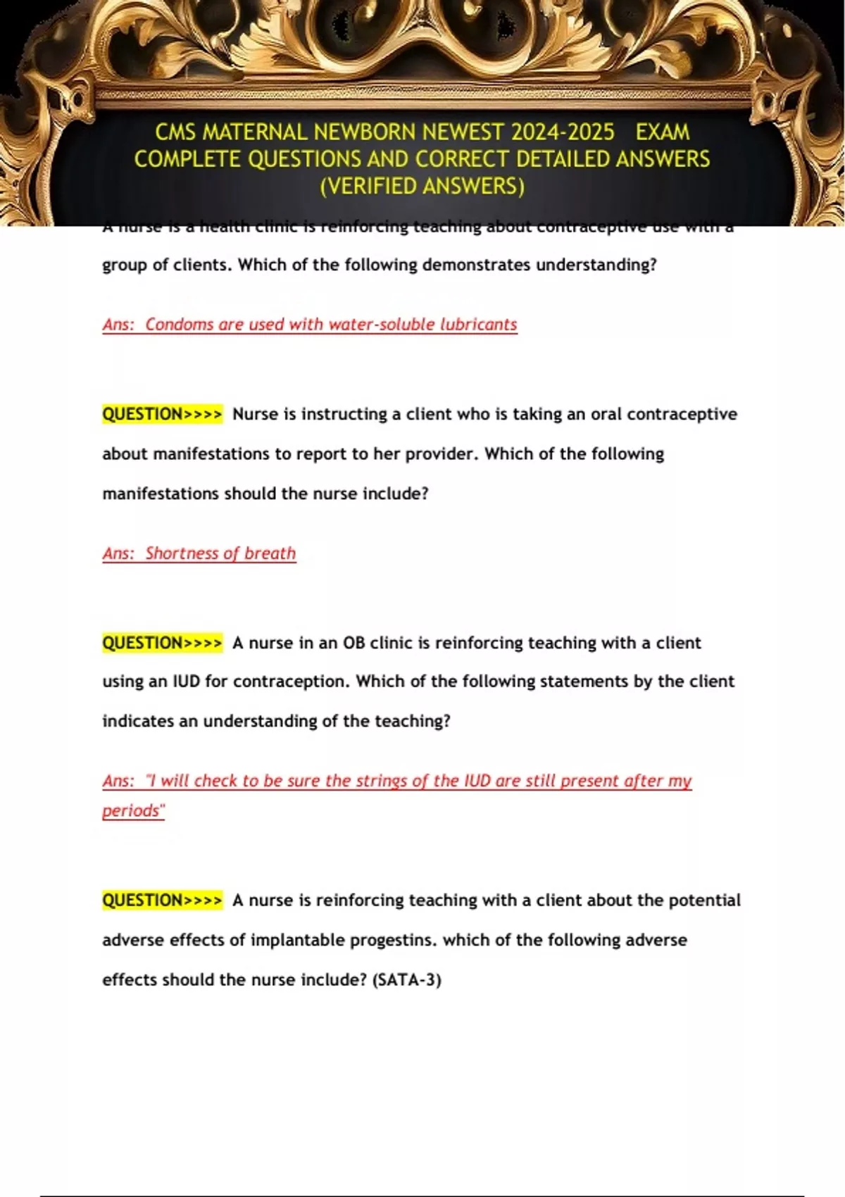 QUESTION>>>> A nurse in an OB clinic is reinforcing teaching with a client