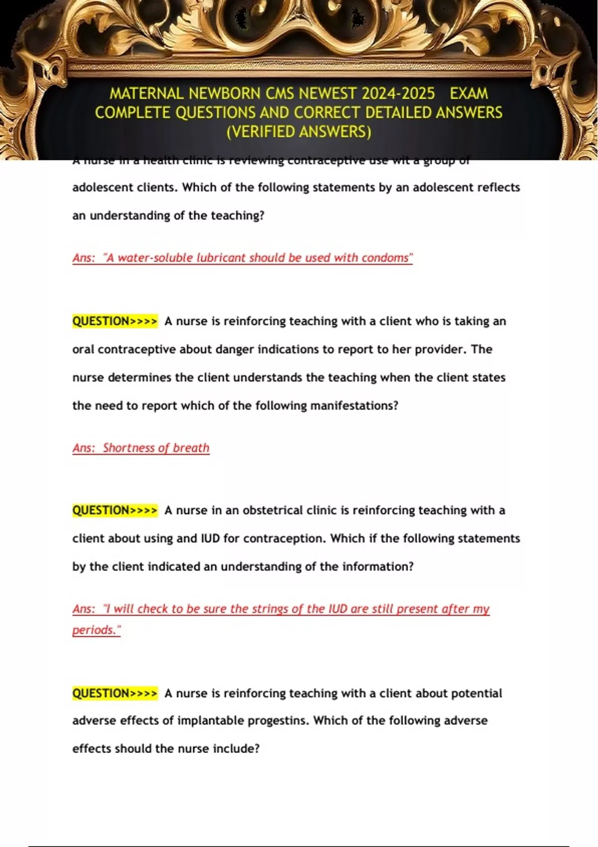 COMPLETE QUESTIONS AND CORRECT DETAILED ANSWERS