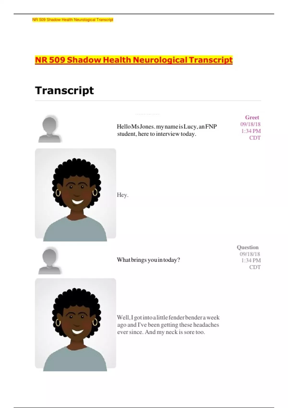 NR 509 Shadow Health Neurological Transcript