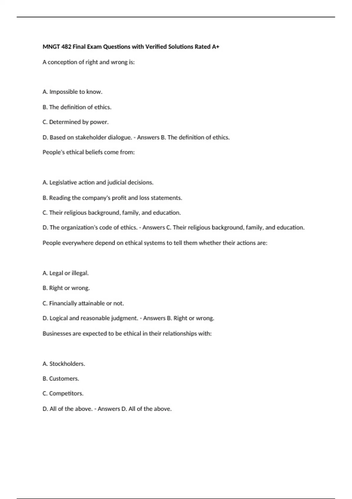 D. Based on stakeholder dialogue. - Answers B. The definition of ethics.