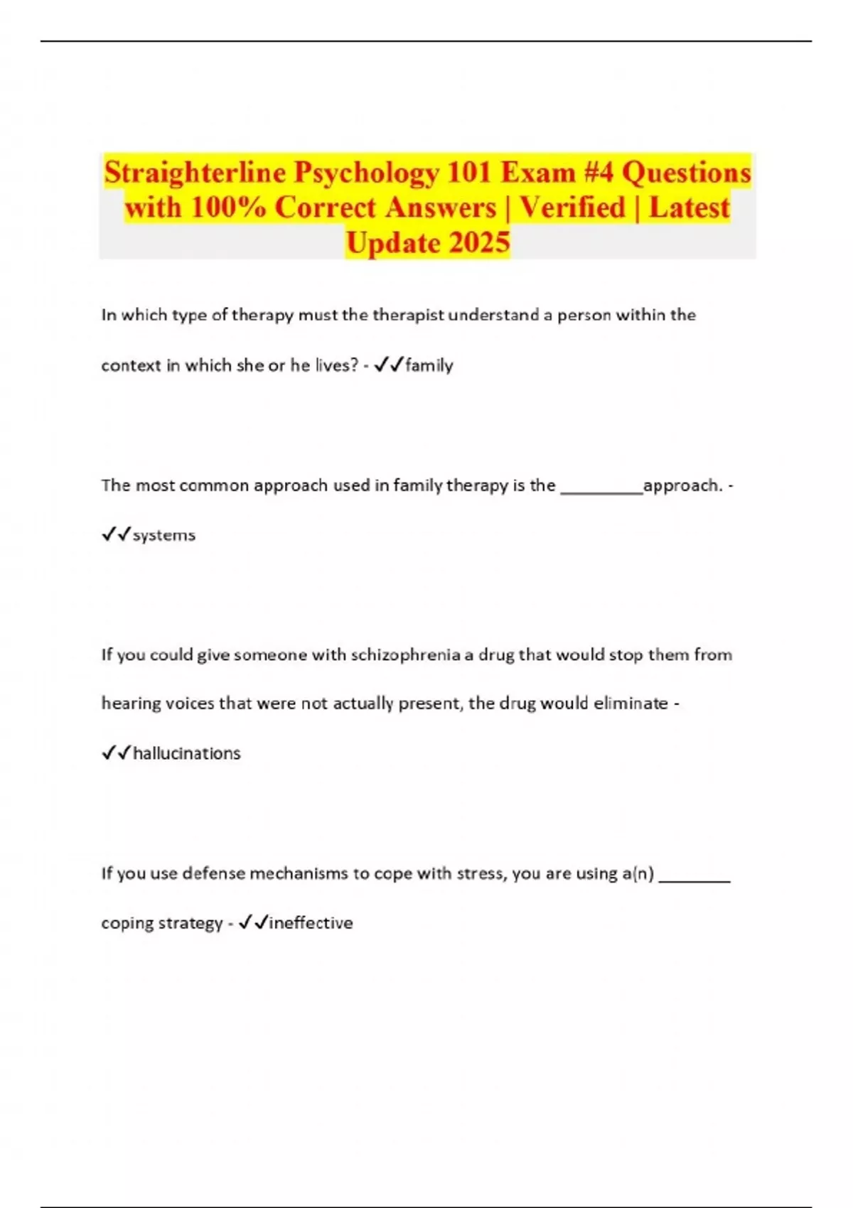 Straighterline Psychology 101 Exam #4 Questions with 100% Correct Answers | Verified | Latest Update 2025
