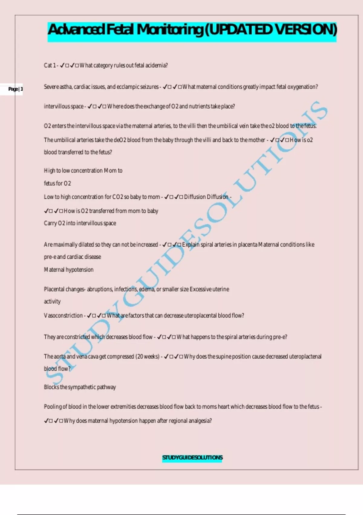 Page | 1 Severe astha, cardiac issues, and ecclampic seizures - ✔◻✔◻What maternal conditions greatly impact fetal oxygenation?