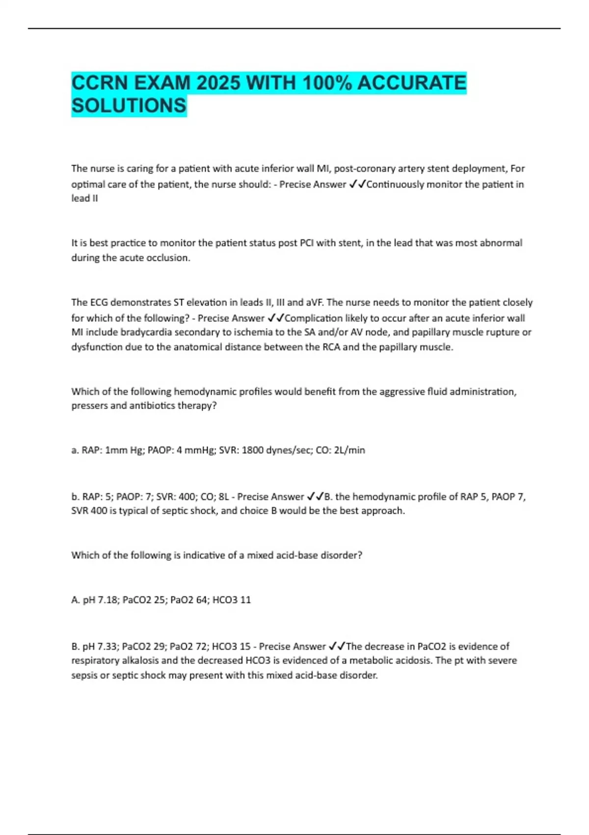 CCRN EXAM 2025 WITH 100% ACCURATE SOLUTIONS