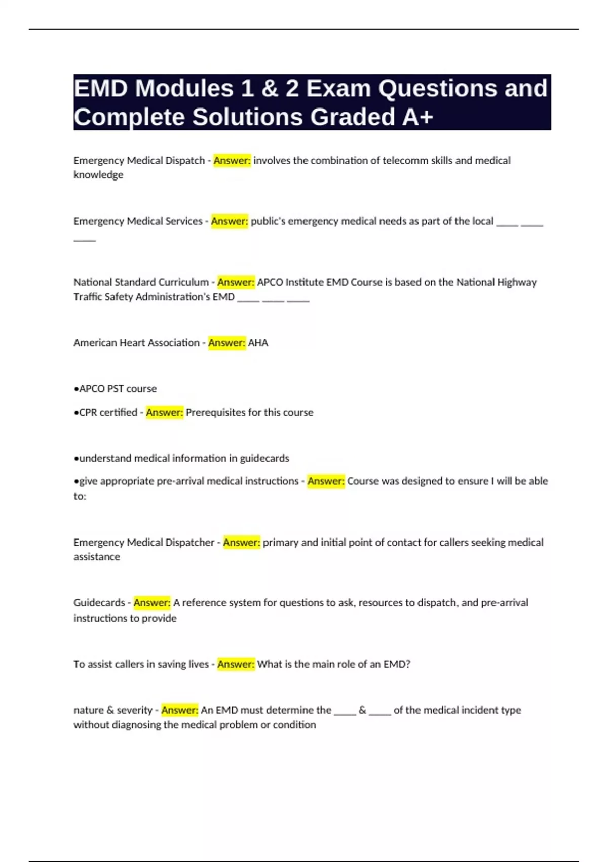 National Standard Curriculum - Answer: APCO Institute EMD Course is based on the National Highway