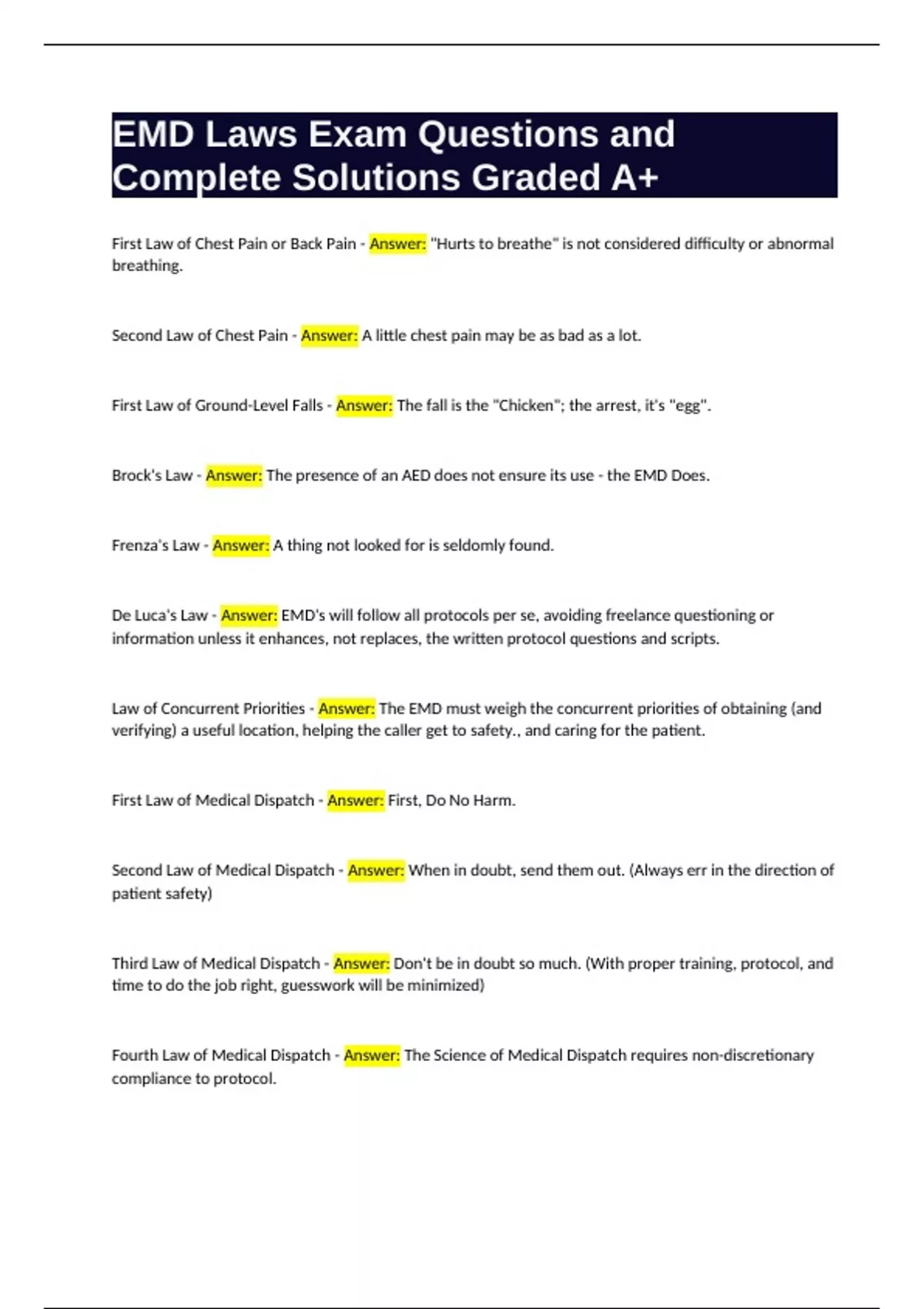 First Law of Medical Dispatch - Answer: First, Do No Harm.