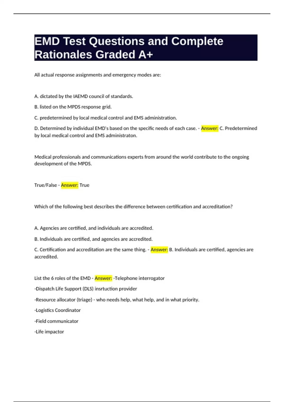 D. Determined by individual EMD's based on the specific needs of each case. - Answer: C. Predetermined