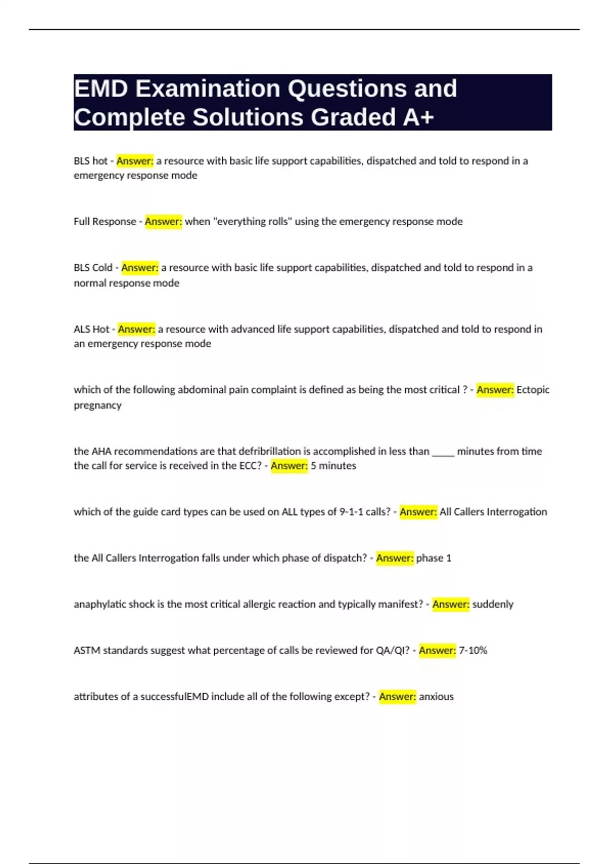 EMD Examination Questions and Complete Solutions Graded A+