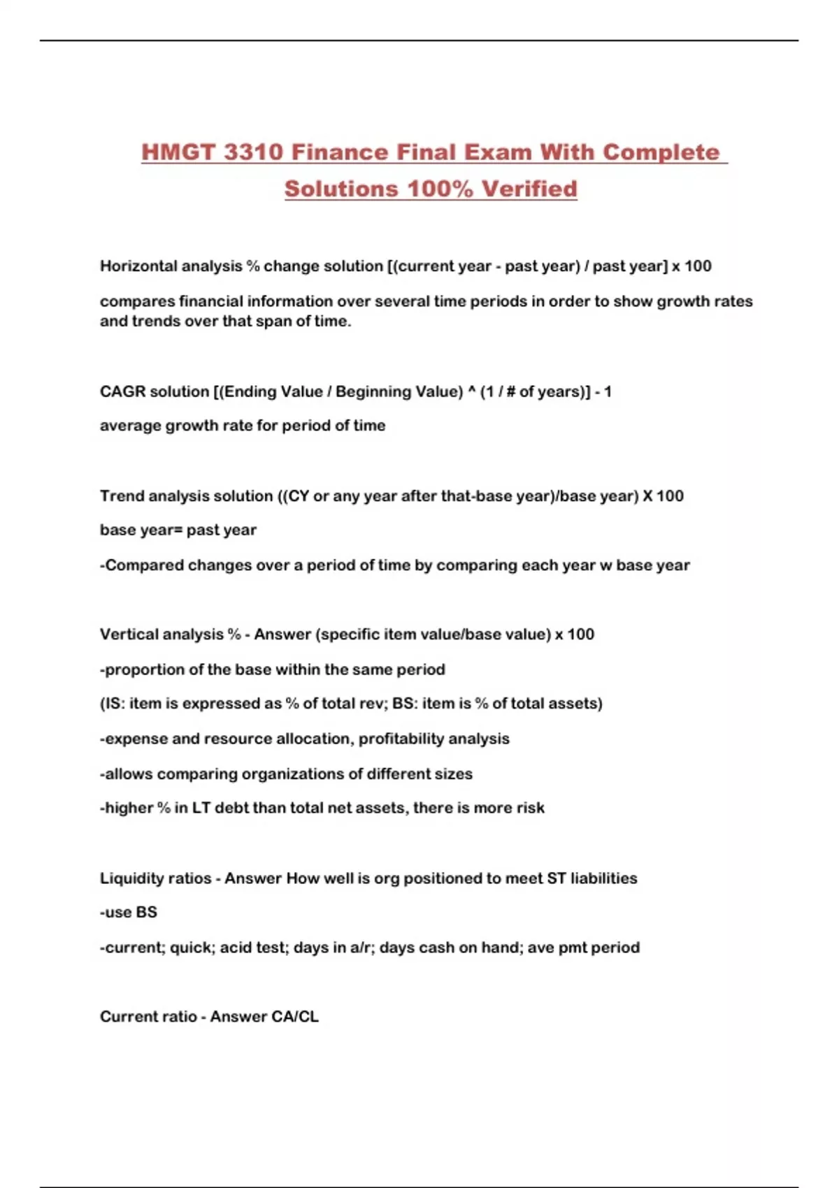 HMGT 3310 Finance Final Exam With Complete Solutions 100% Verified...