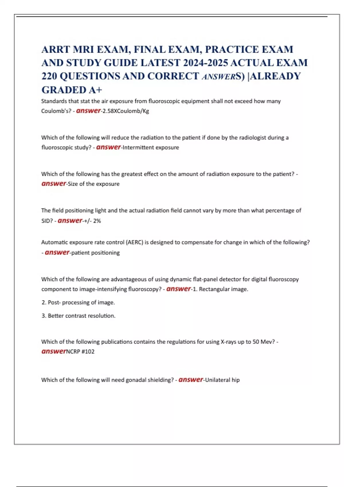 ARRT MRI EXAM, FINAL EXAM, PRACTICE EXAM AND STUDY GUIDE LATEST ACTUAL EXAM 220 QUESTIONS AND CORRECT ANSWERS) |ALREADY GRADED A+