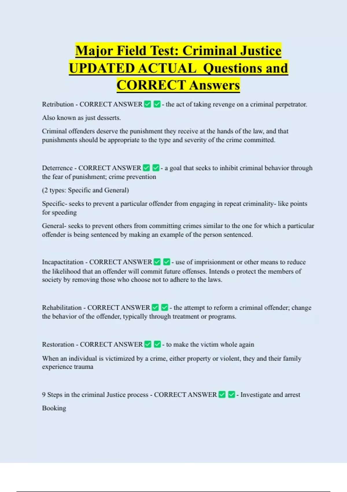 Rehabilitation - CORRECT ANSWER - the attempt to reform a criminal offender; change