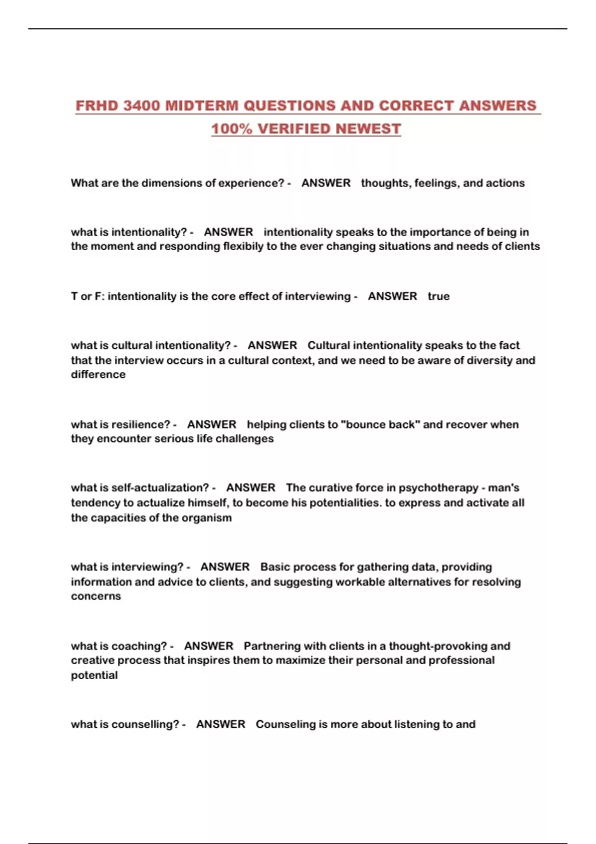 FRHD 3400 MIDTERM QUESTIONS AND CORRECT ANSWERS 100% VERIFIED NEWEST...