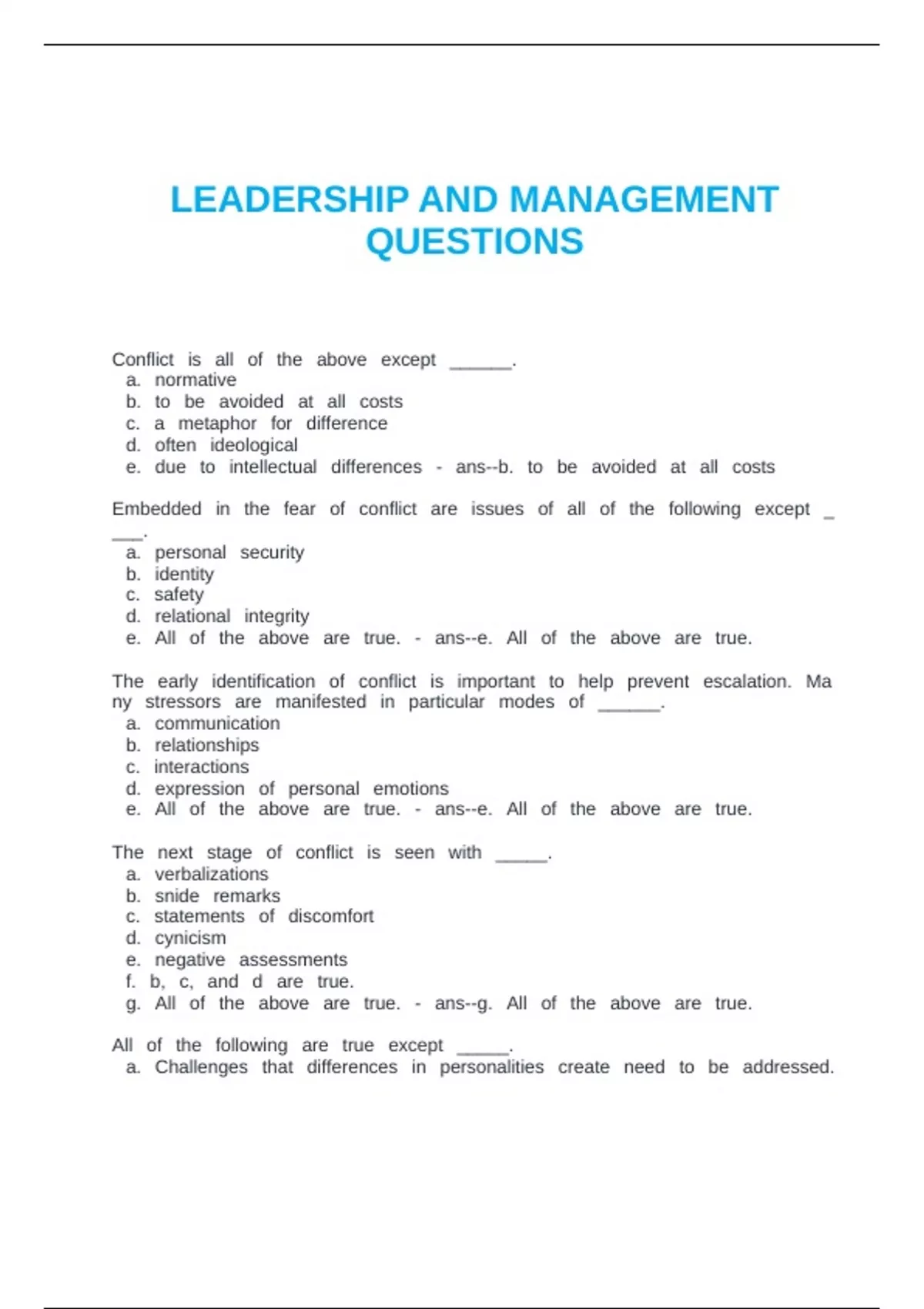 LEADERSHIP AND MANAGEMENT QUESTIONS