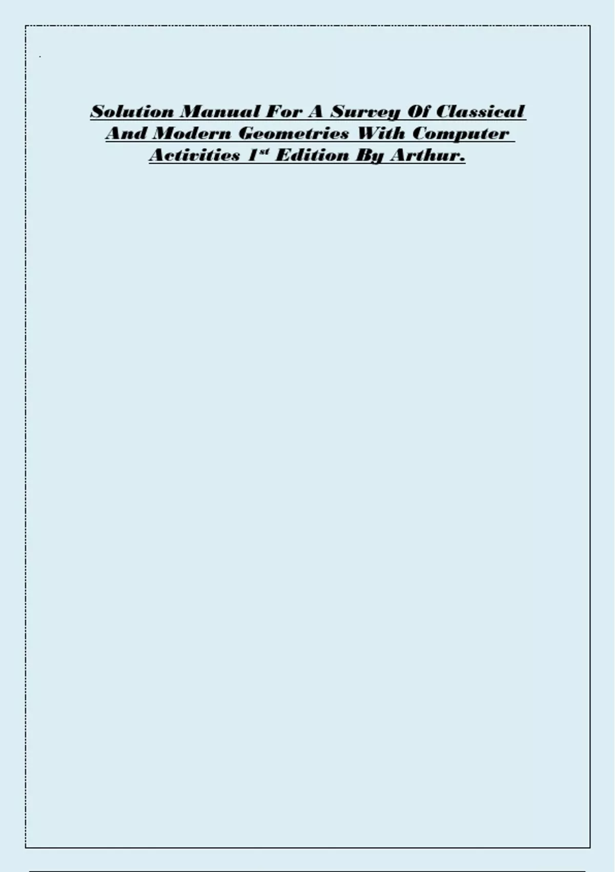 Solution Manual For A Survey Of Classical And Modern Geometries With Computer Activities 1st Edition By Arthur