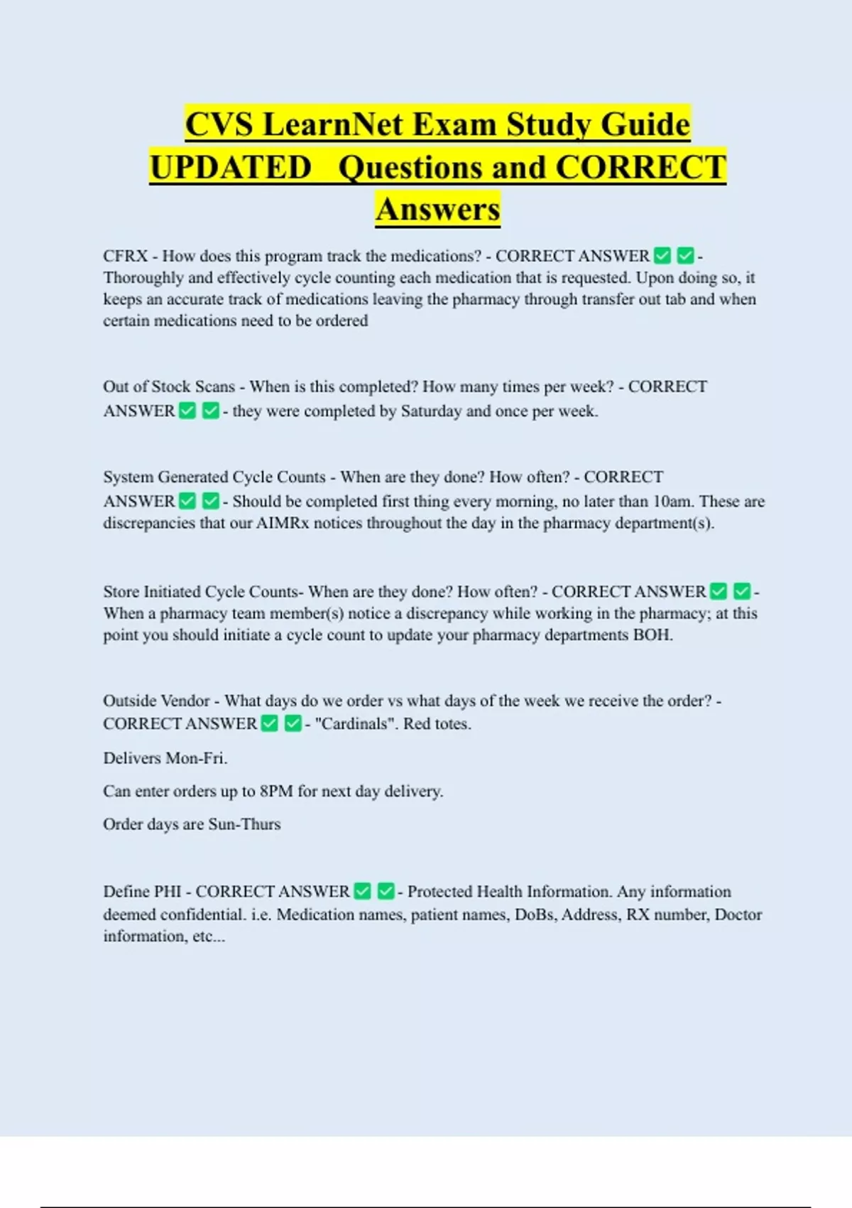 CVS LearnNet Exam Study Guide UPDATED Questions and CORRECT Answers